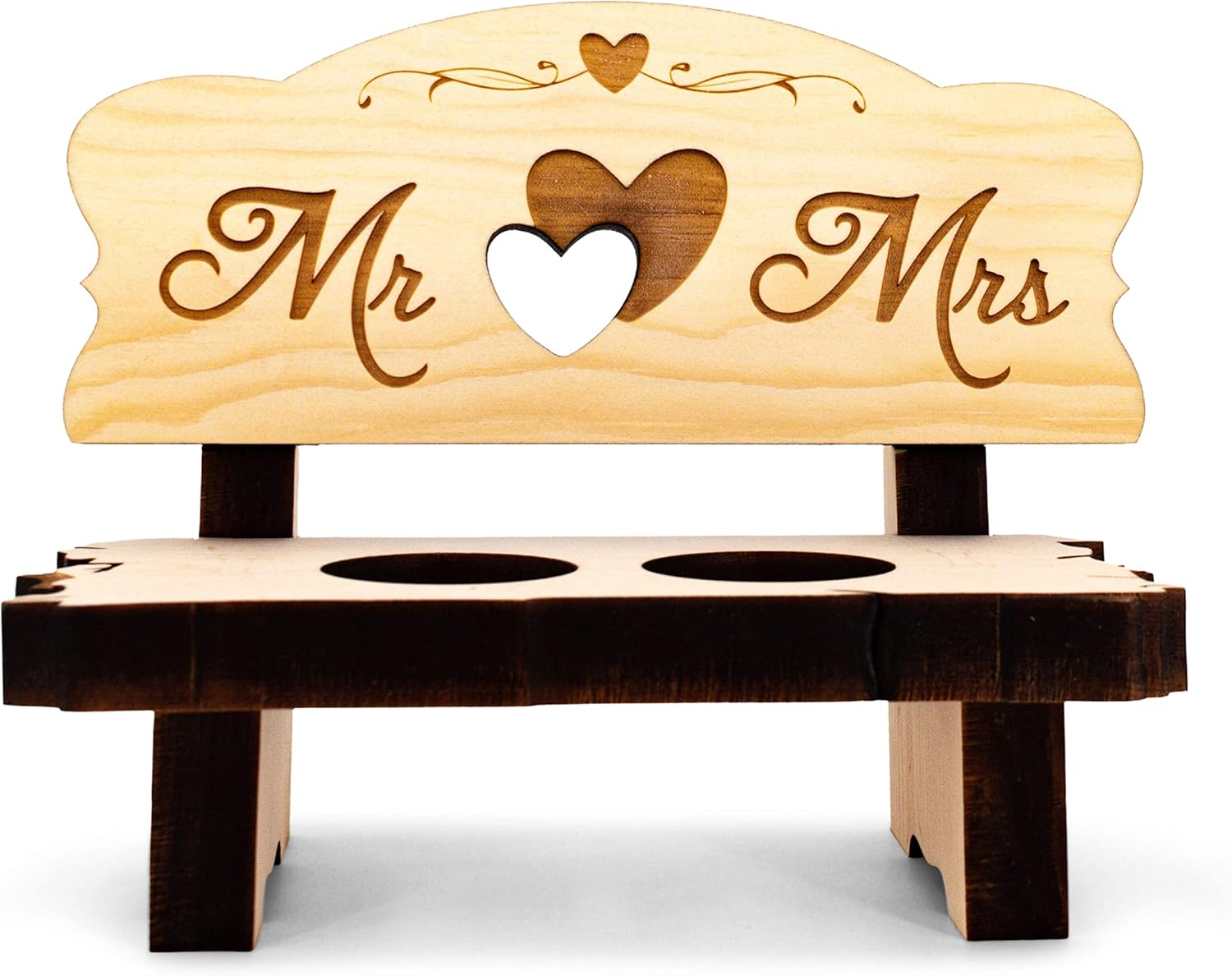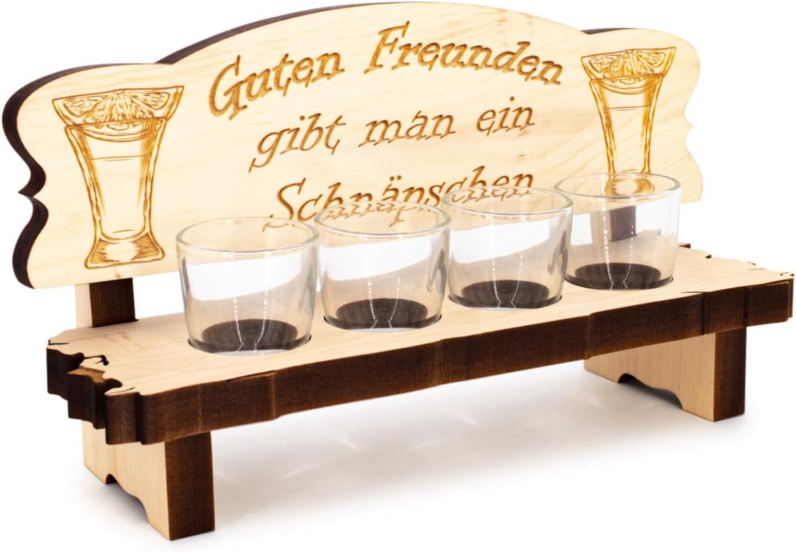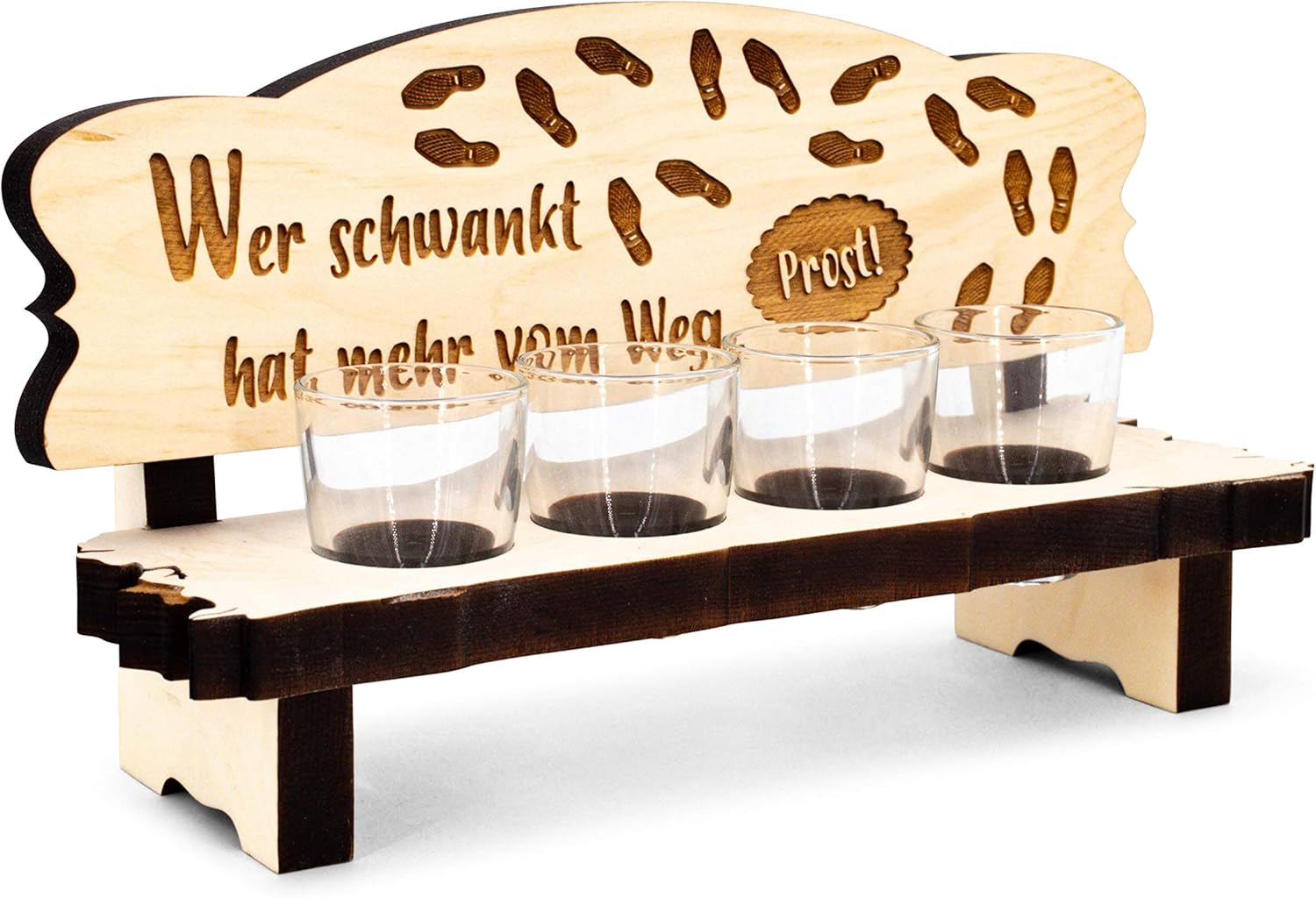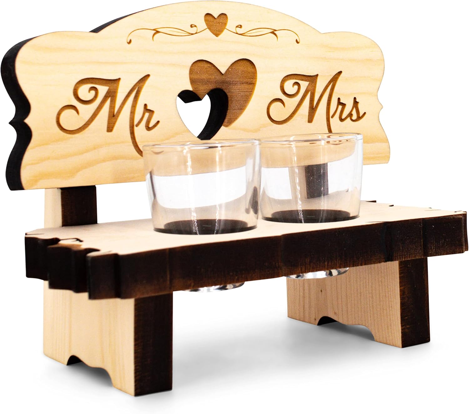 Дървена пейка за шнапс Sagl.tirol с гравиране [100% естествено] - Подаръци за г-н и г-жа, сватбени подаръци за булка и младоженец с 2 чаши за шнапс