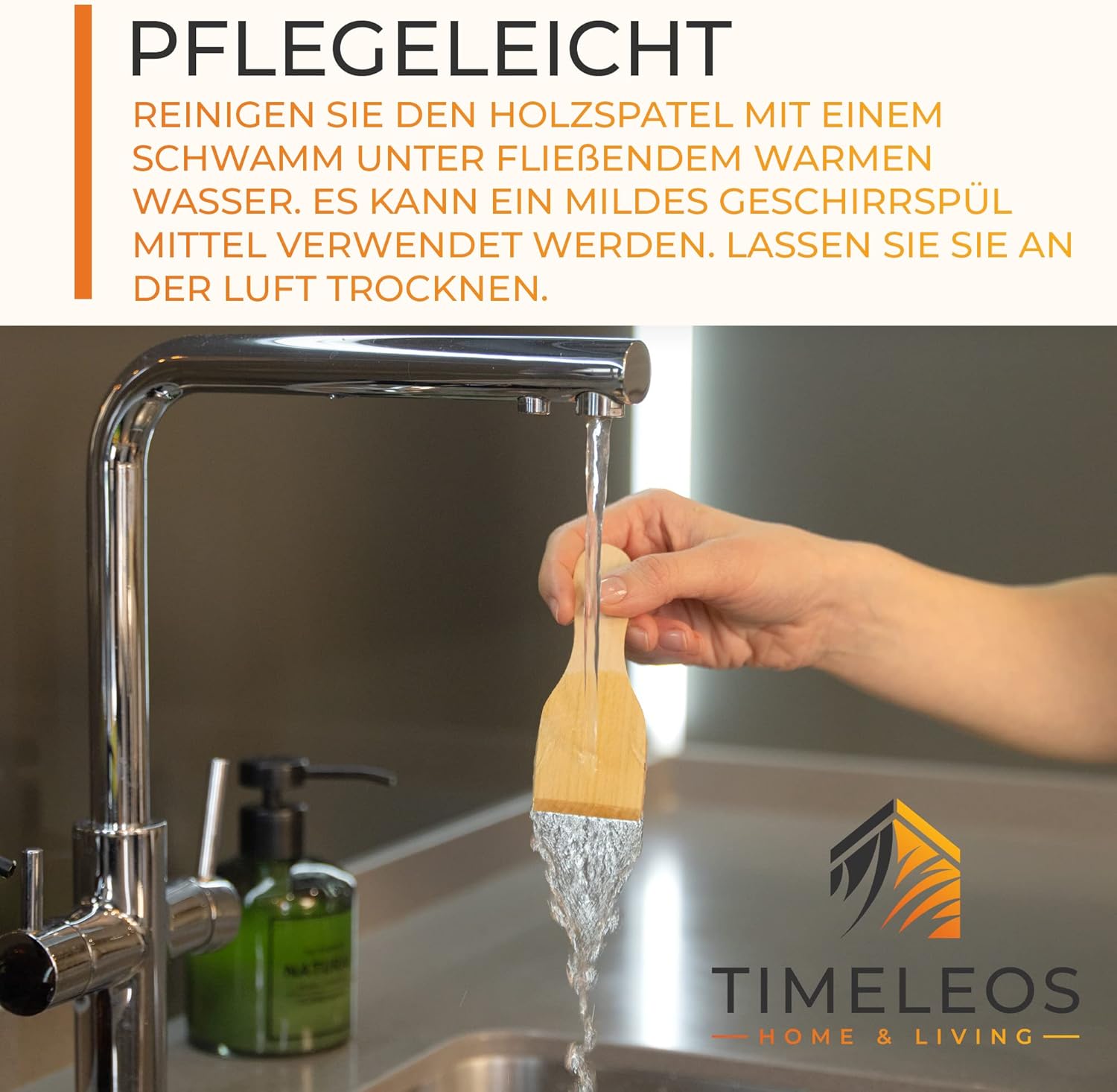 необработена дървесина, следователно не е подходяща за съдомиялни машини. Предметите са изработени от местна букова дървесина и не са обработени с химикали или масла. Букът е особено издръжлив като твърда дървесина и е много подходящ за кухненски принадлежности.