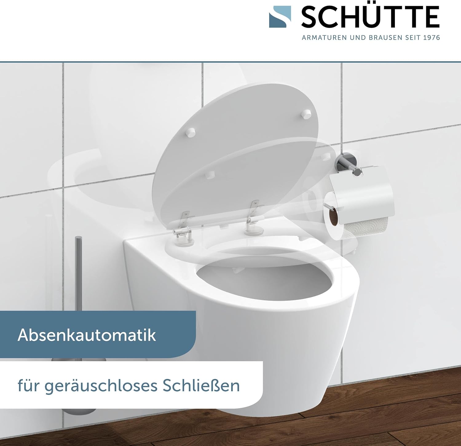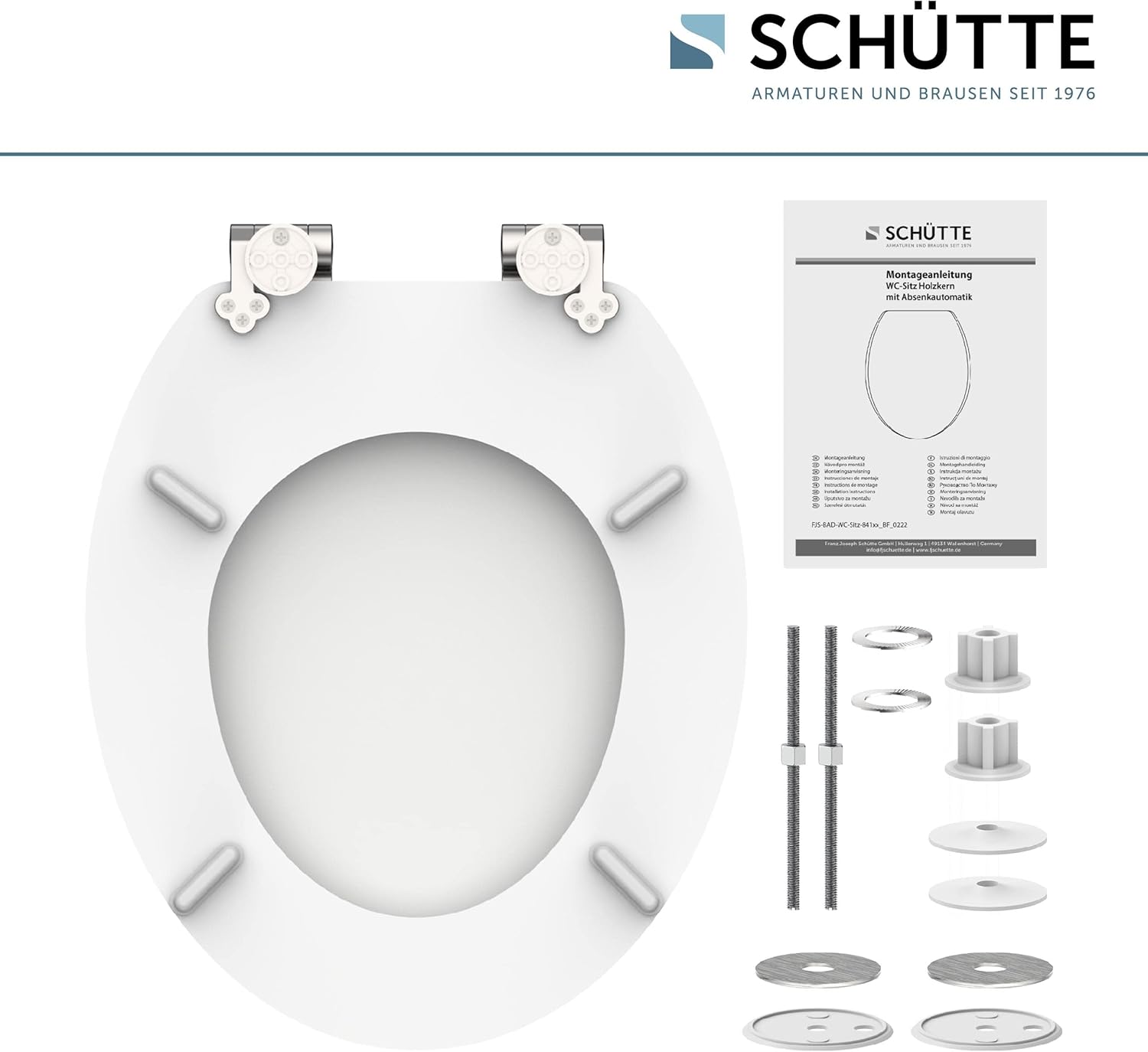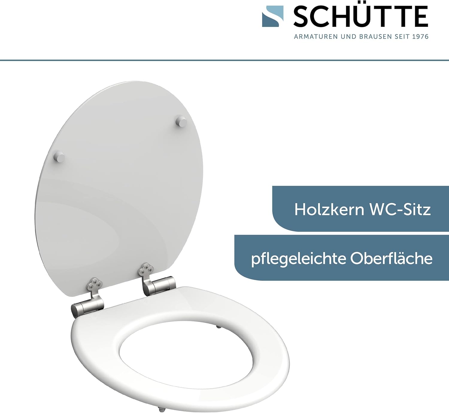 Дървена тоалетна чиния SCHÜTTE с механизъм за плавно затваряне, капак от MDF, тоалетна чиния с дървена сърцевина и капак, тоалетна чиния и капак, максимално натоварване 175 кг, бяла