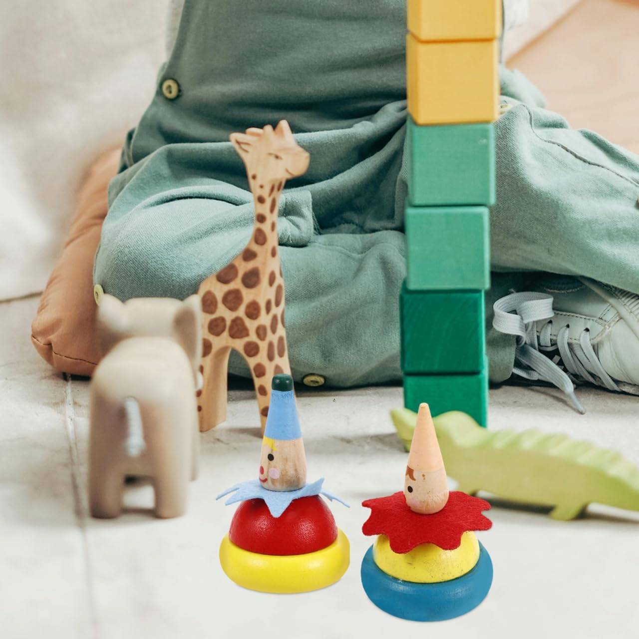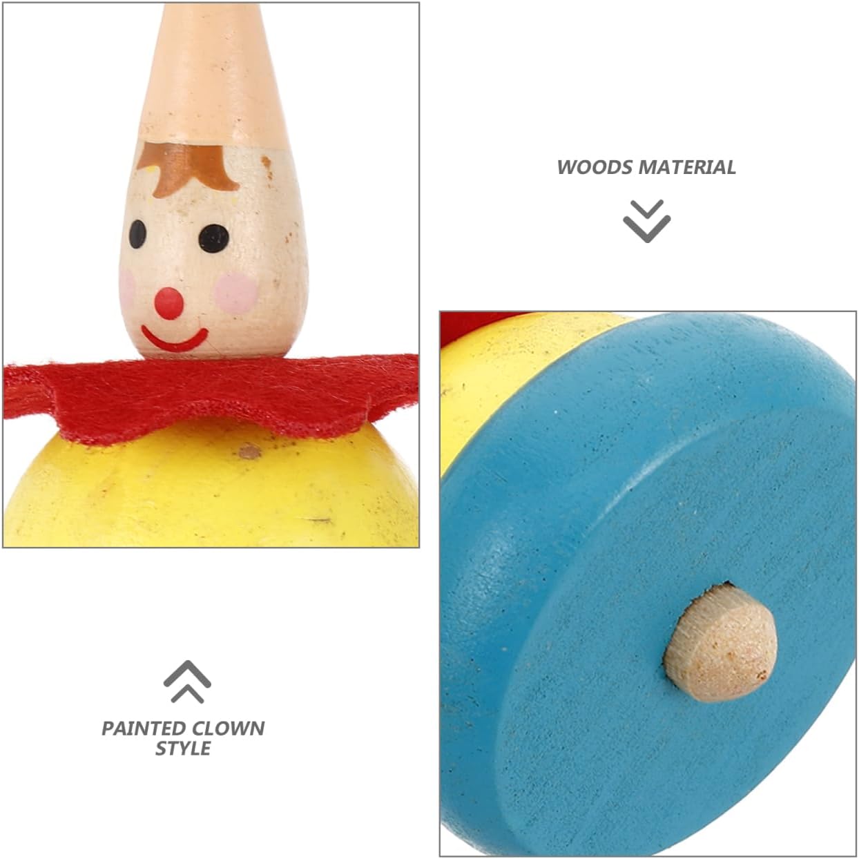 2 дървени пумпа - играчка с клоун - рисувана образователна играчка за детска градина Описание Пумпалите са изработени от висококачествена дървесина със заоблени ръбове, което ги прави естествени и безопасни. Сладкият им външен вид и дизайн лесно привличат вниманието на бебето и стимулират интереса на децата. Като интерактивна играчка, те засилват комуникацията с децата чрез игра и насърчават семейните отношения. Характеристики - Цвят: Както е показано. - Материал: Дърво. - Размер: 5.0 x 5.0 x 7.0 см (Д x Ш x В). Пакетът включва 2 x рисувани клоунски пумпа.