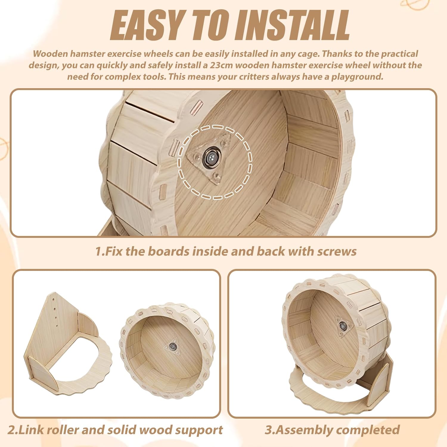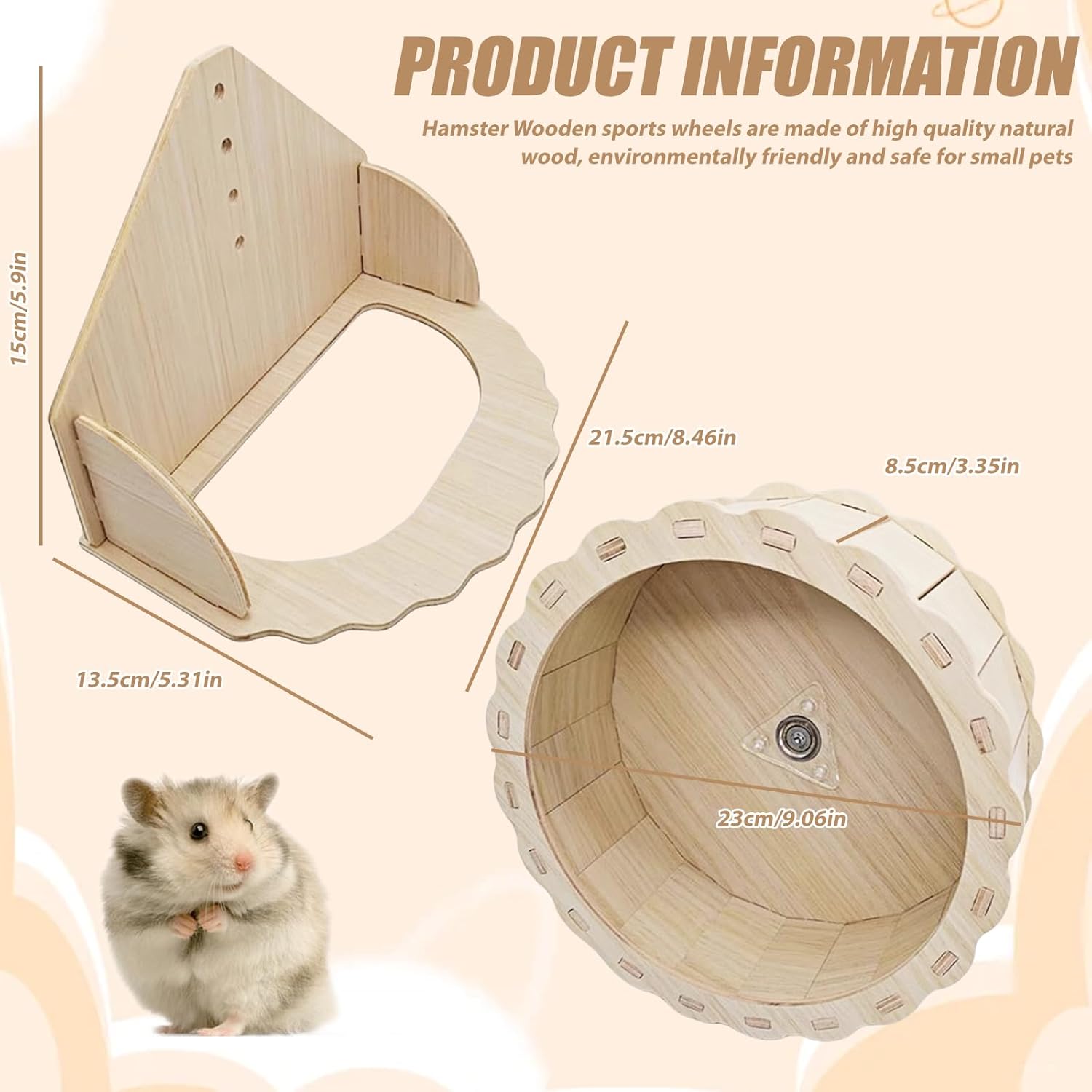 Дървено колело за хамстер WIYETY: 23 см дървено бягащо колело, за хамстер, тиха играчка за хамстер, колело за хамстер, бягащо колело за малки животни, за джуджета, джербили, мишки или други малки домашни любимци.