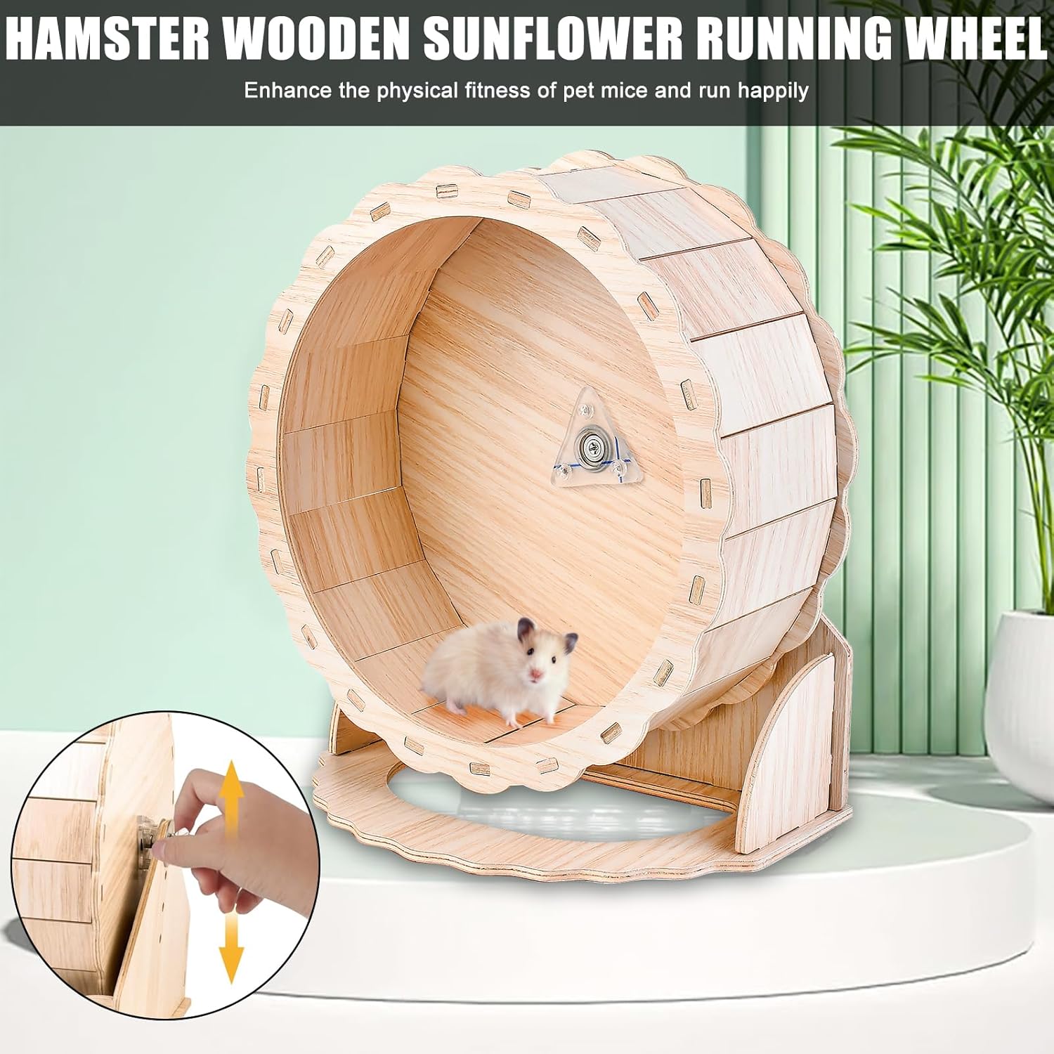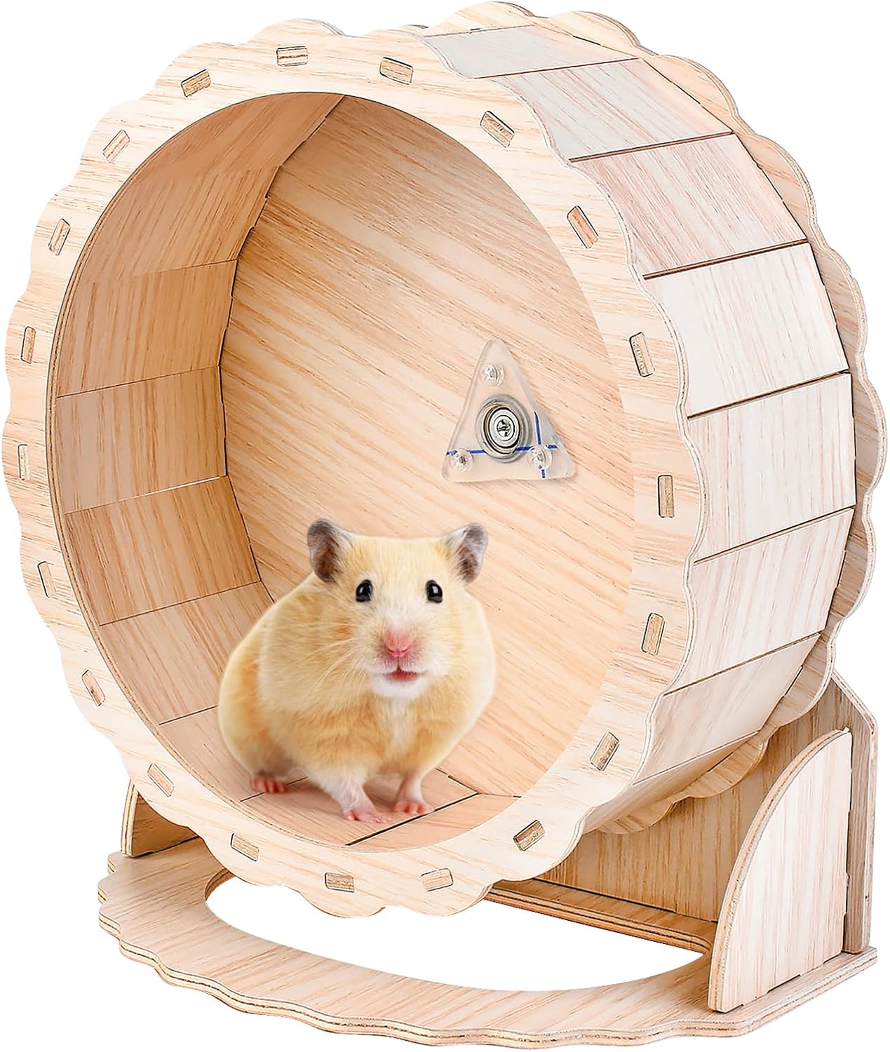 Дървено колело за хамстер с диаметър 23 см, дървен балансиращ велосипед, тихо бягащо колело за хамстер, подходящо за джуджета, мишки, джербили или други малки домашни любимци.