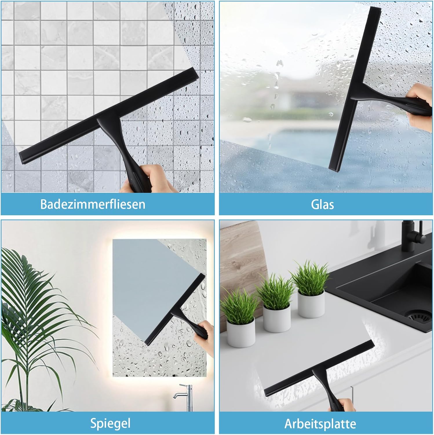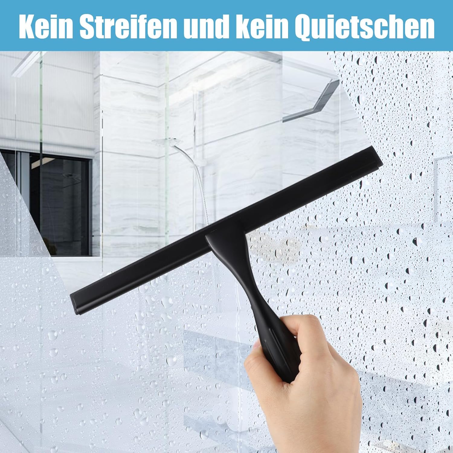 Душ чистачка, черна, душ чистачка от неръждаема стомана, 10 инча, чистачка за прозорци без следи за душ с държач, чистачка за прозорци за баня, прозорец, огледало, автомобилно стъкло