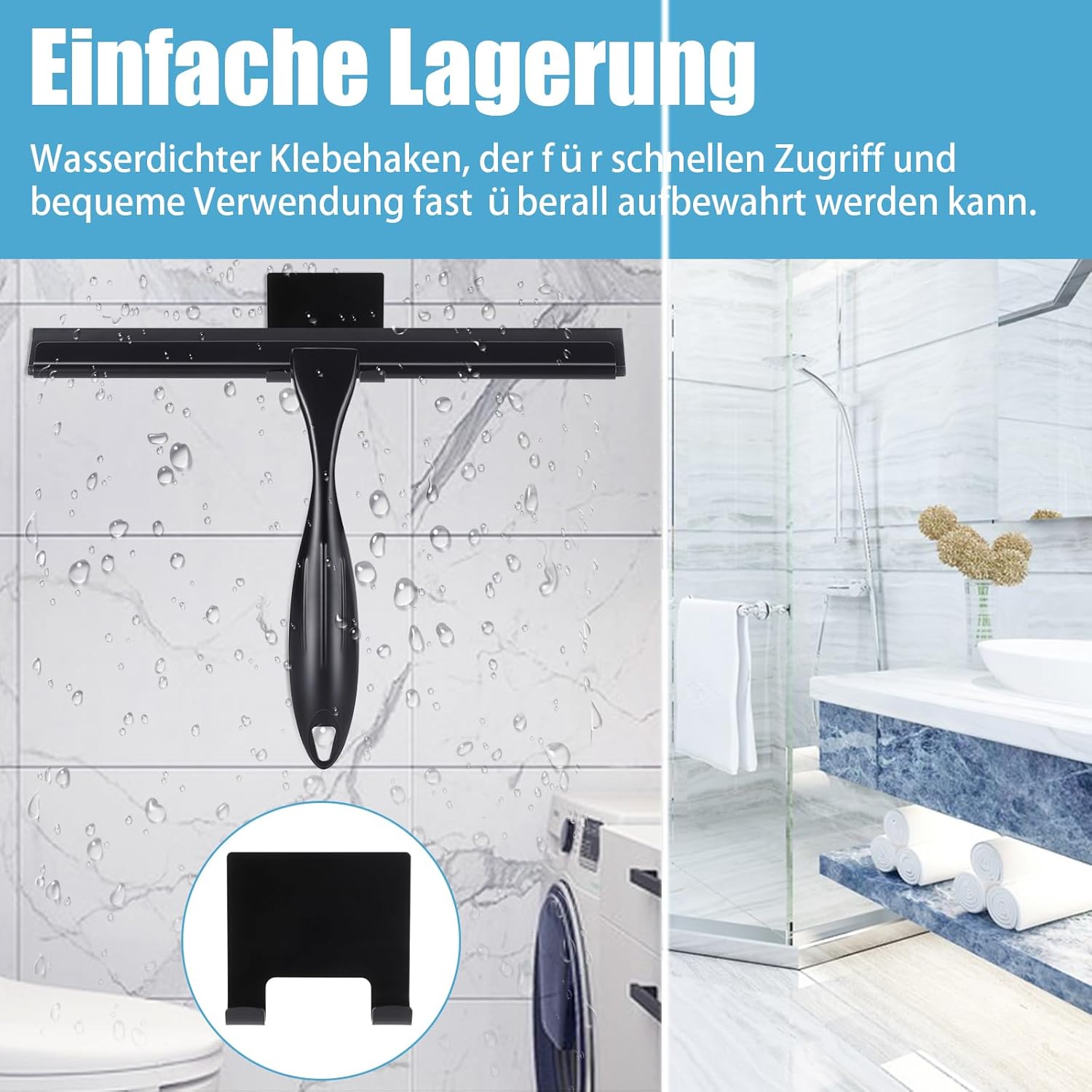 • Лесно съхранение: Нашата чистачка за прозорец се предлага с държач, който улеснява окачването и съхранението на чистачката за прозорец. Водоустойчивият държач може да се залепи почти навсякъде за бърз достъп и удобна употреба. С елегантен външен вид, чистачката за стена на душа е подходяща за различни стилове на баня.