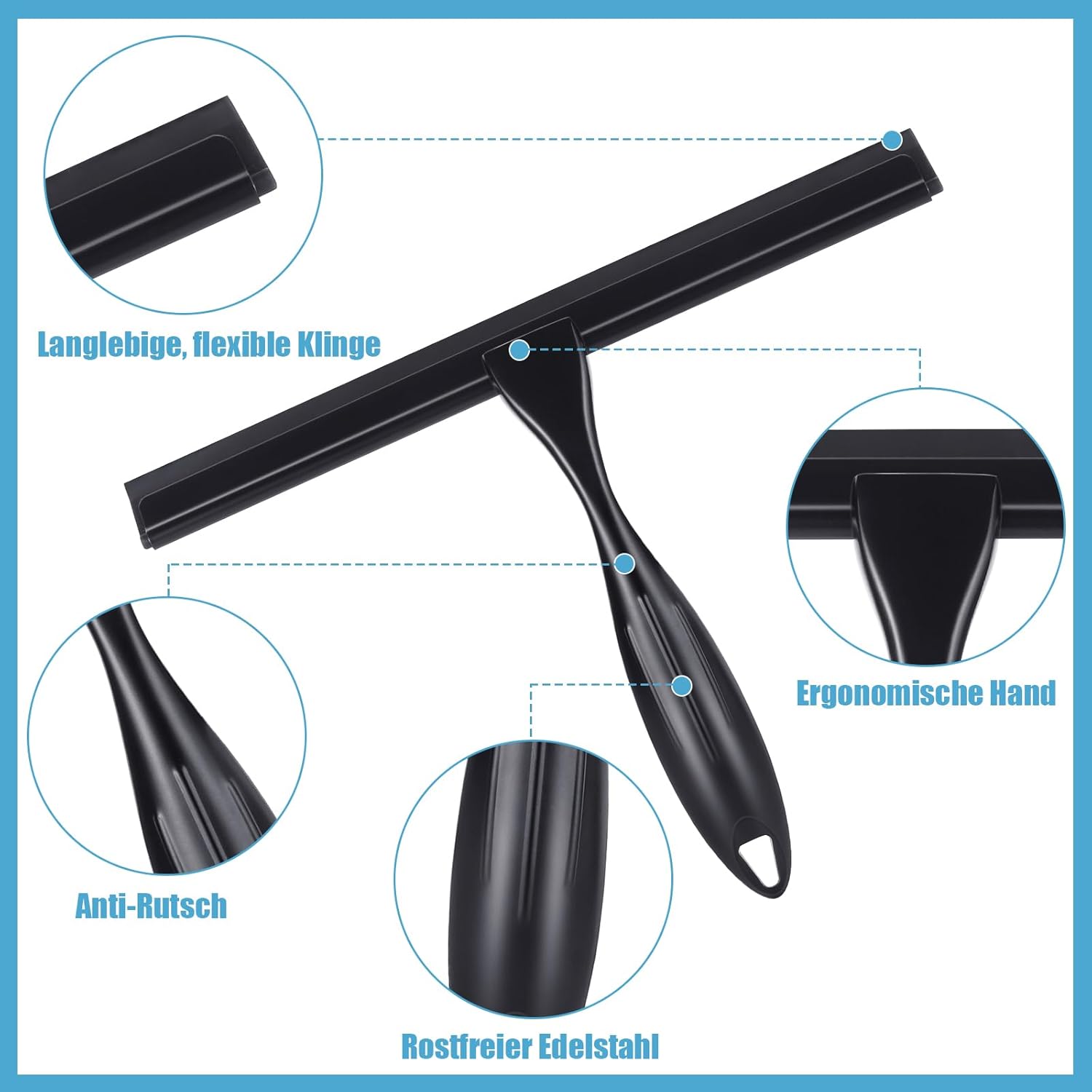 • Ефективно почистване: с тази чистачка за прозорци можете бързо и лесно да почистите водните петна и сапунената пяна по огледалото, прозореца и вратата на душа, за да предотвратите образуването на петна и отлагания по стъклените повърхности. Просто изстъргване напред-назад с чистачка за прозорци, стъклената повърхност може да стане чиста и без следи.