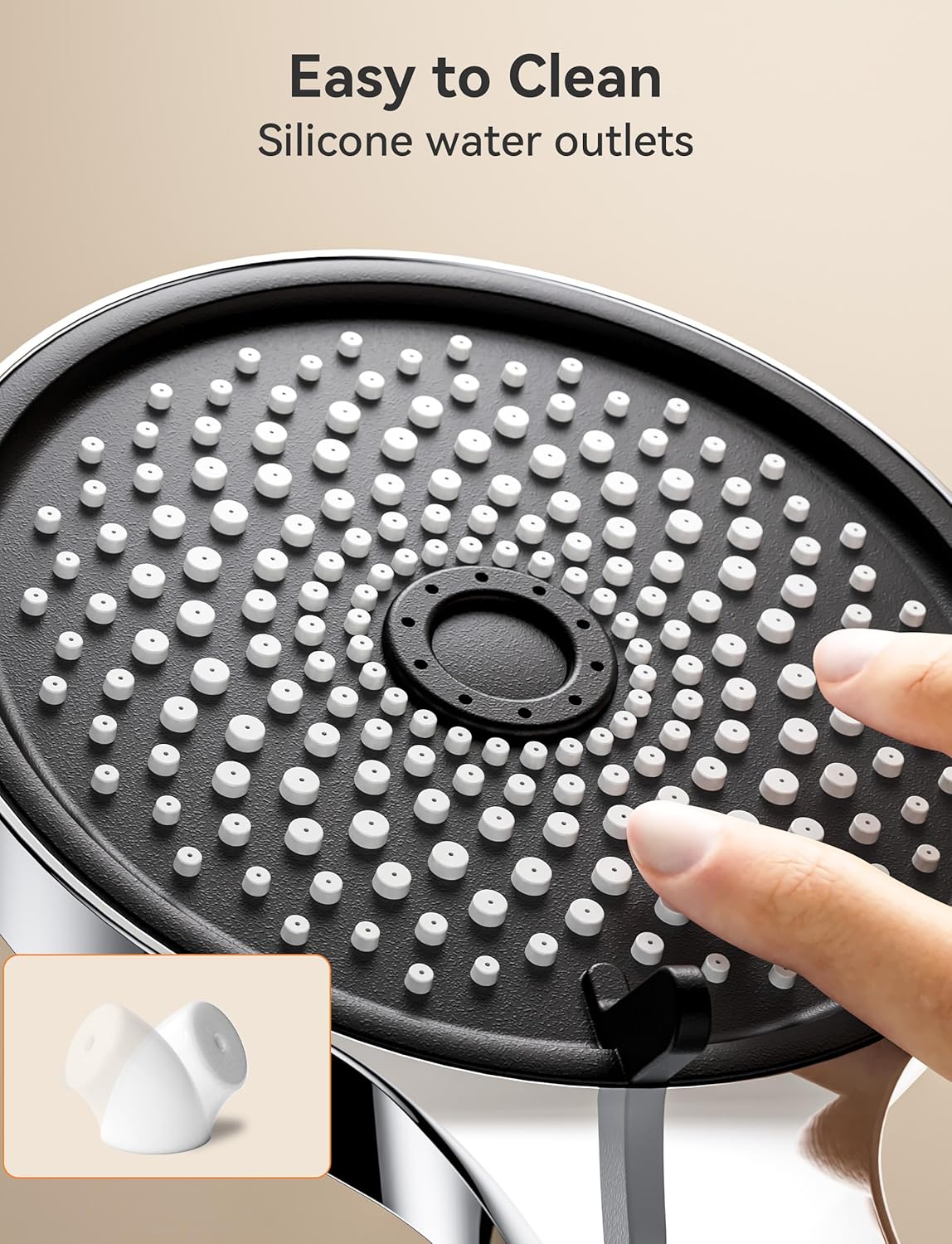 • Лесен монтаж: този душ и маркуч се монтират лесно без инструменти. Благодарение на силиконовата дюза, душът се почиства лесно. Можете лесно да премахнете котления камък, като избършете дюзите с ръка или с четка.