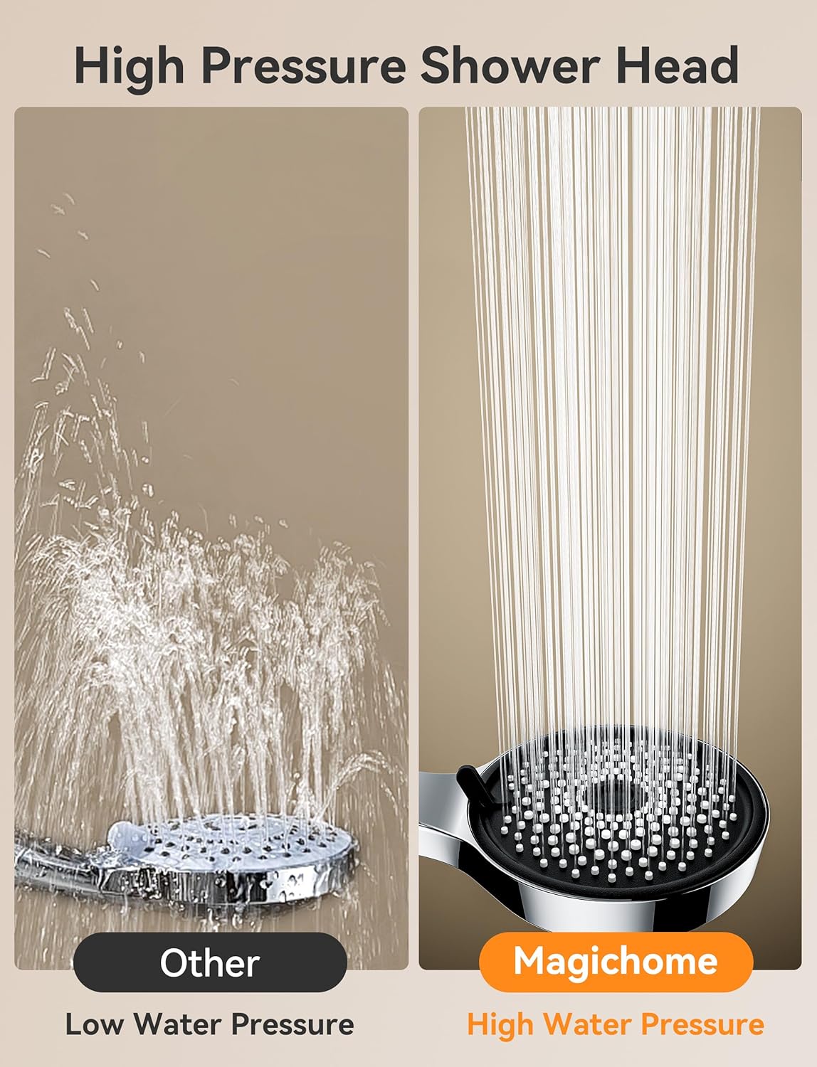 Душ глава Magichome, Пестене на вода, Голям душ с високо налягане с 5 вида струи, Ръчен душ, Душ глава с повишаване на налягането, Душ тип „Дъжд“, Голям икономичен душ