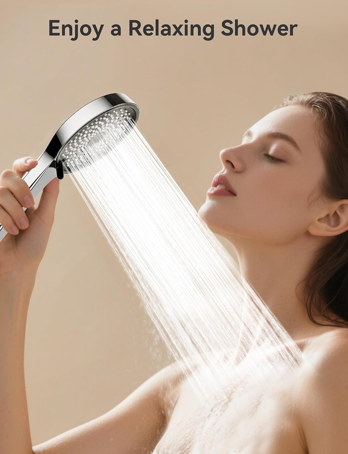 • Душ слушалка с 5 режима: тази ръчна душ слушалка има 5 различни режима на струя, за да отговори на вашите различни нужди от душ. Всеки режим осигурява различно изживяване.