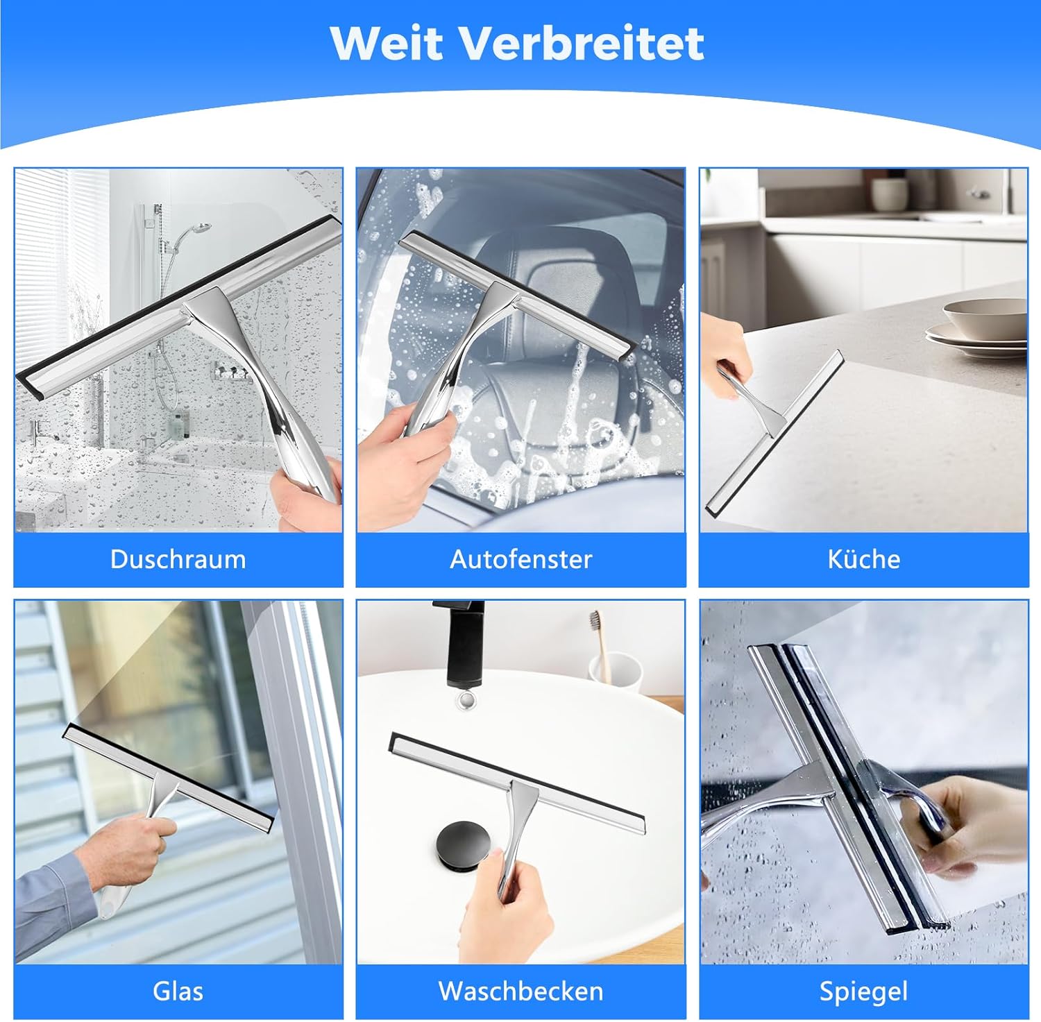 • Ефективно почистване: с тази чистачка за прозорци можете бързо и лесно да почистите водните петна и сапунената пяна по огледалото, прозореца и вратата на душа, за да предотвратите образуването на петна и отлагания по стъклените повърхности. Просто изстъргване напред-назад с чистачка за прозорци, стъклената повърхност може да стане чиста и без следи.