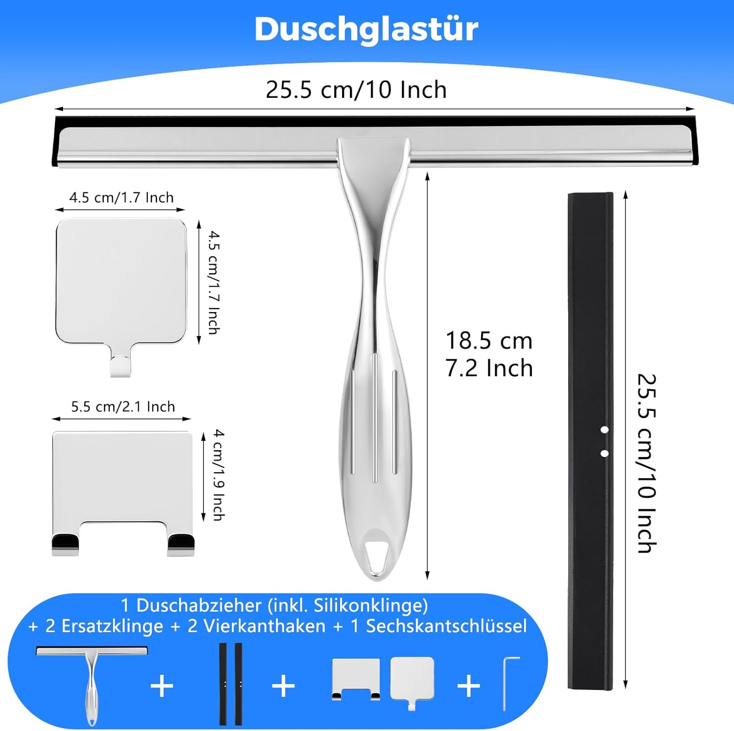 • Удобна за употреба: дръжката на душ гумената накрайник от неръждаема стомана е ергономична и лесна за хващане и употреба. Извитият дизайн приляга добре към формата на ръката ви. Нашата душ гумена накрайник е много гъвкава и отлична за изстъргване на вода от стъкло и плочки само с кърпичка.