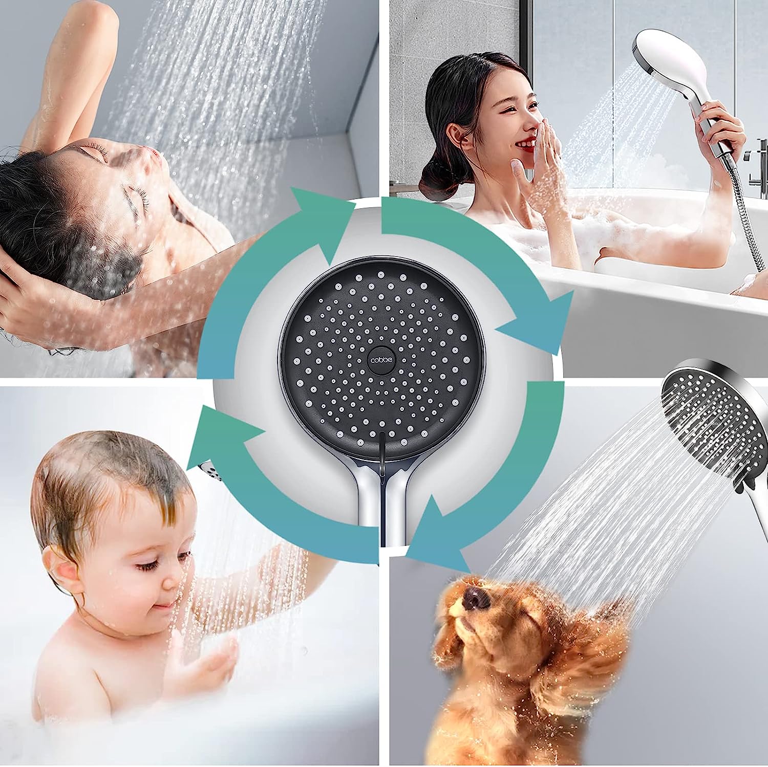 Душ слушалка Cobbe, 130мм диаметър, Три режима на струя, Водоспестяваща, Включва 1.5м маркуч, Сребриста
