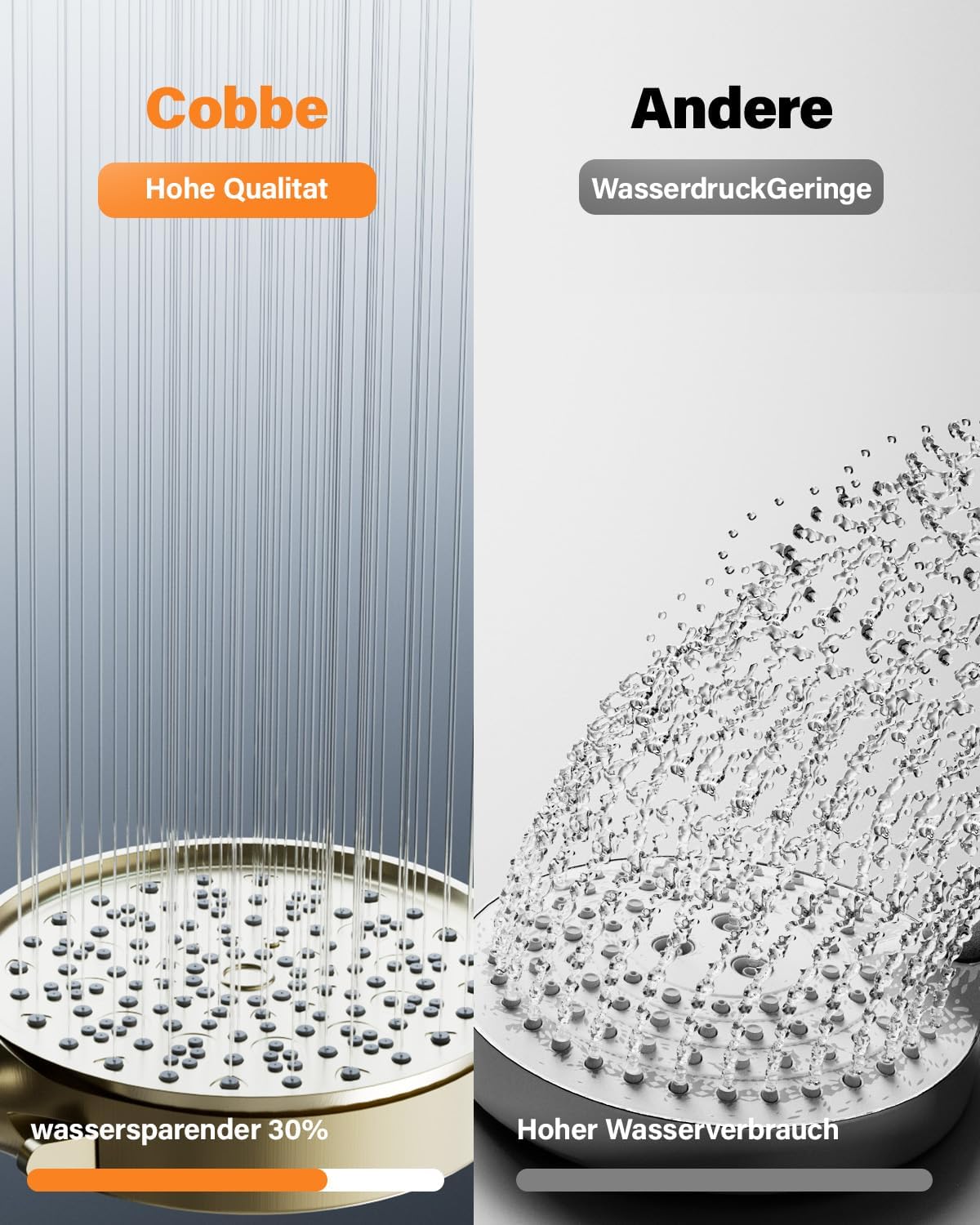 • Високо налягане и пестене на вода: Тази душ глава използва уникална вътрешна структура и технология за налягане, както и равномерно разпределение на силиконовата дюза, което осигурява по-силен воден поток и стабилно водно налягане, като същевременно пести вода. Душ главата с високо налягане с голям панел осигурява напълно покрито изживяване при дъжд, така че можете да се насладите на комфортен дъжд.