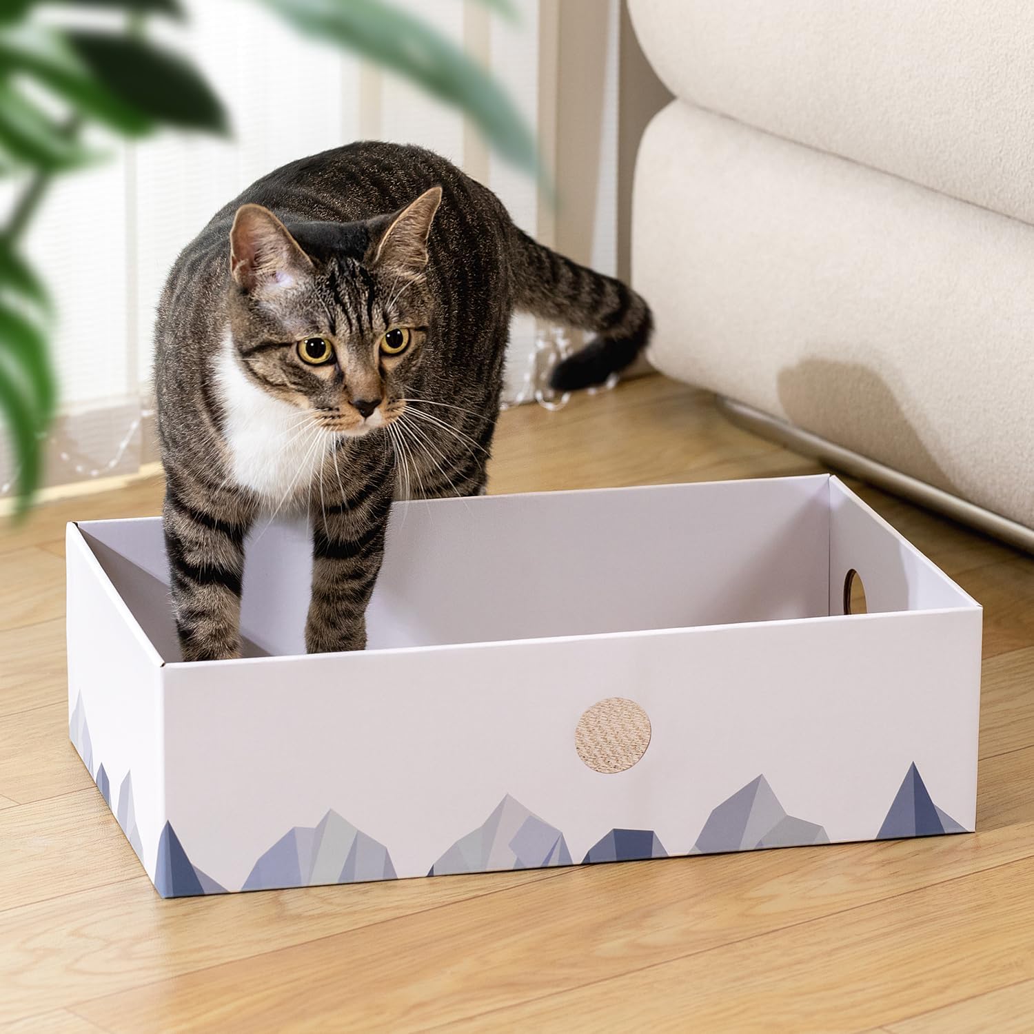 • Чисто драскане без бъркотия: За разлика от отворените мебели за драскане за котки, тази затворена дъска за драскане за котки държи картонените отпадъци в кутията, така че подът да остане чист.