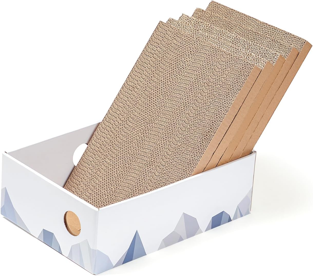 Дъска за драскане Conlun за котки с кутия, голяма мебел за драскане, двустранна дъска за драскане за котки, интерактивни отвори, легло за драскане за домашни котки, с котешка трева (1 брой, голяма, бяла)