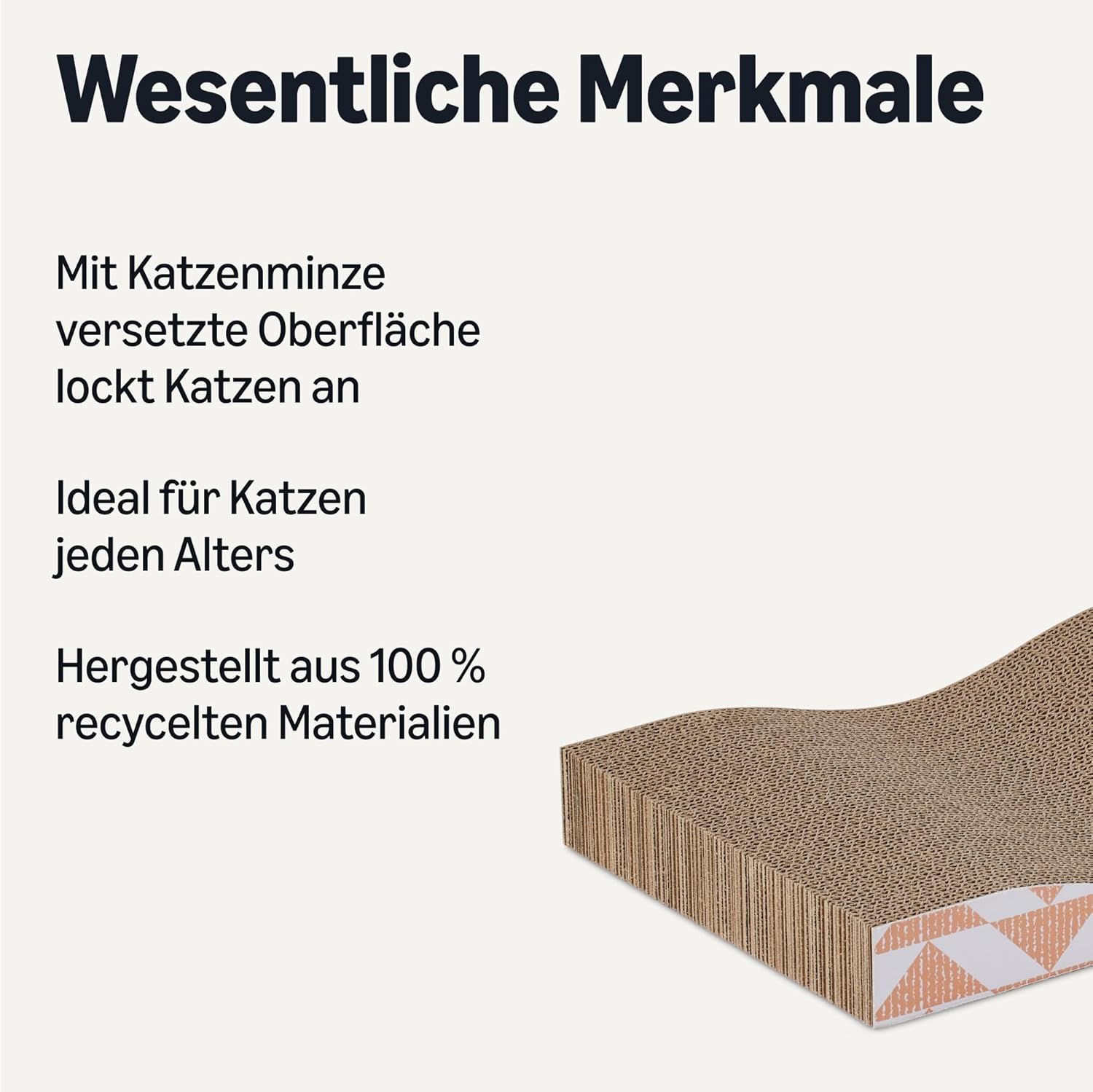 Дъска за драскане за котки Amazon Basics, извита, двустранна, от гофриран картон, 41,9 см x 20,6 см x 4,1 см, пакет от 2, бежова