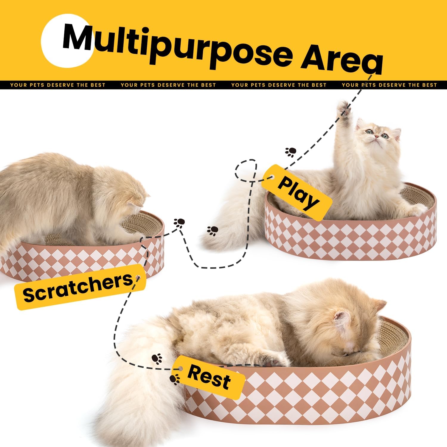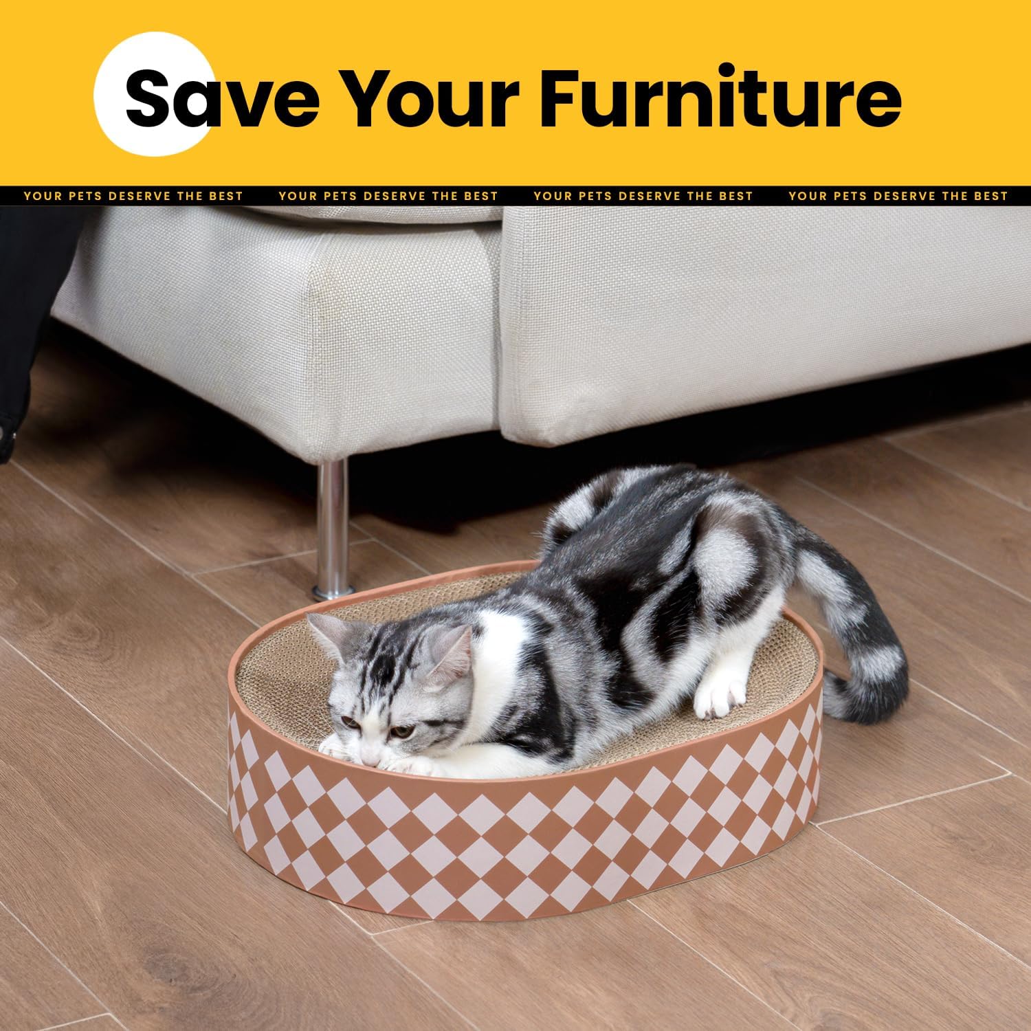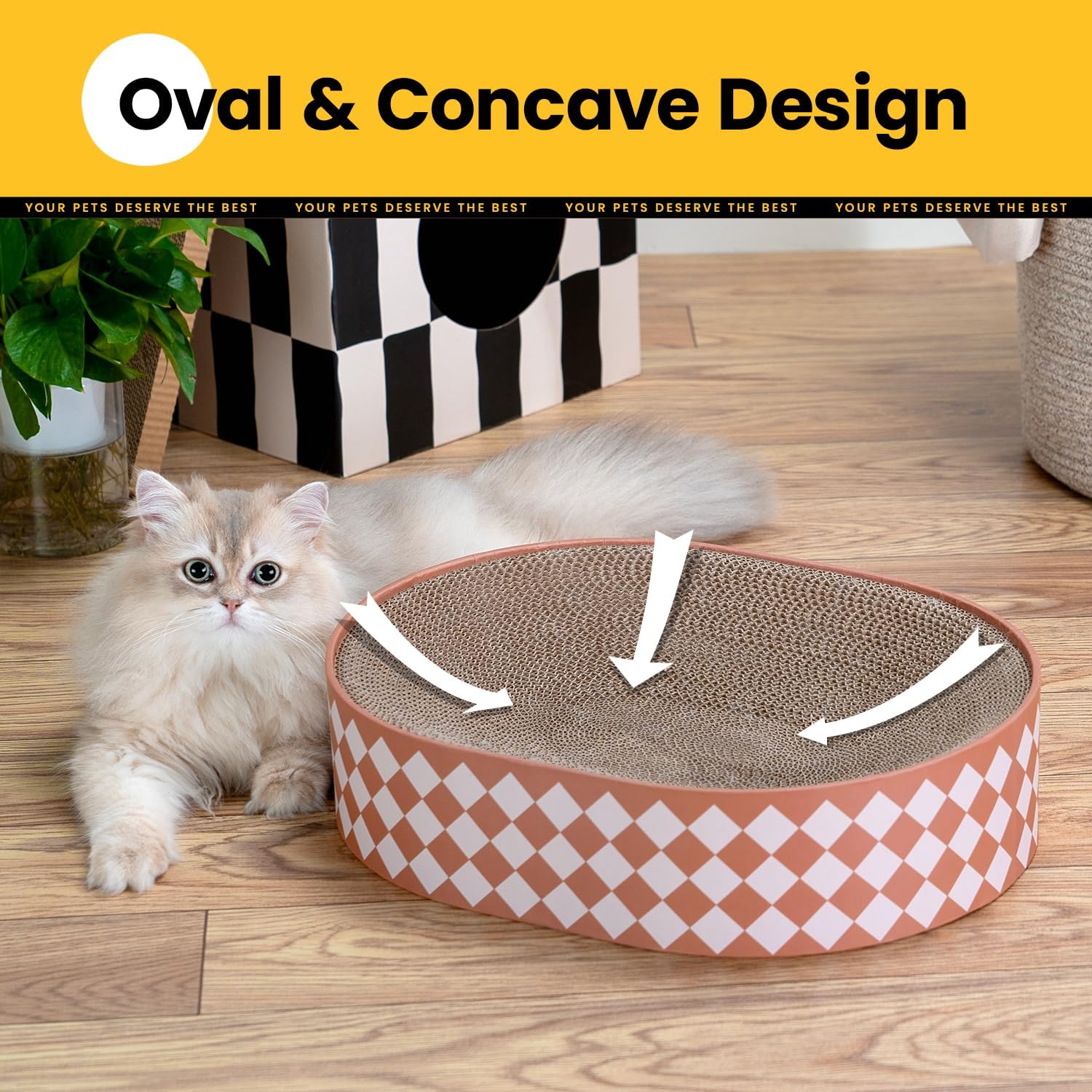 Дъска за драскане за котки Conlun, овална дъска за драскане за котки, дизайн 2 в 1, изработен от естествен картон, диван за драскане със затворена основа за трохи, готова за употреба - без сглобяване, стилни цветове за всеки дом