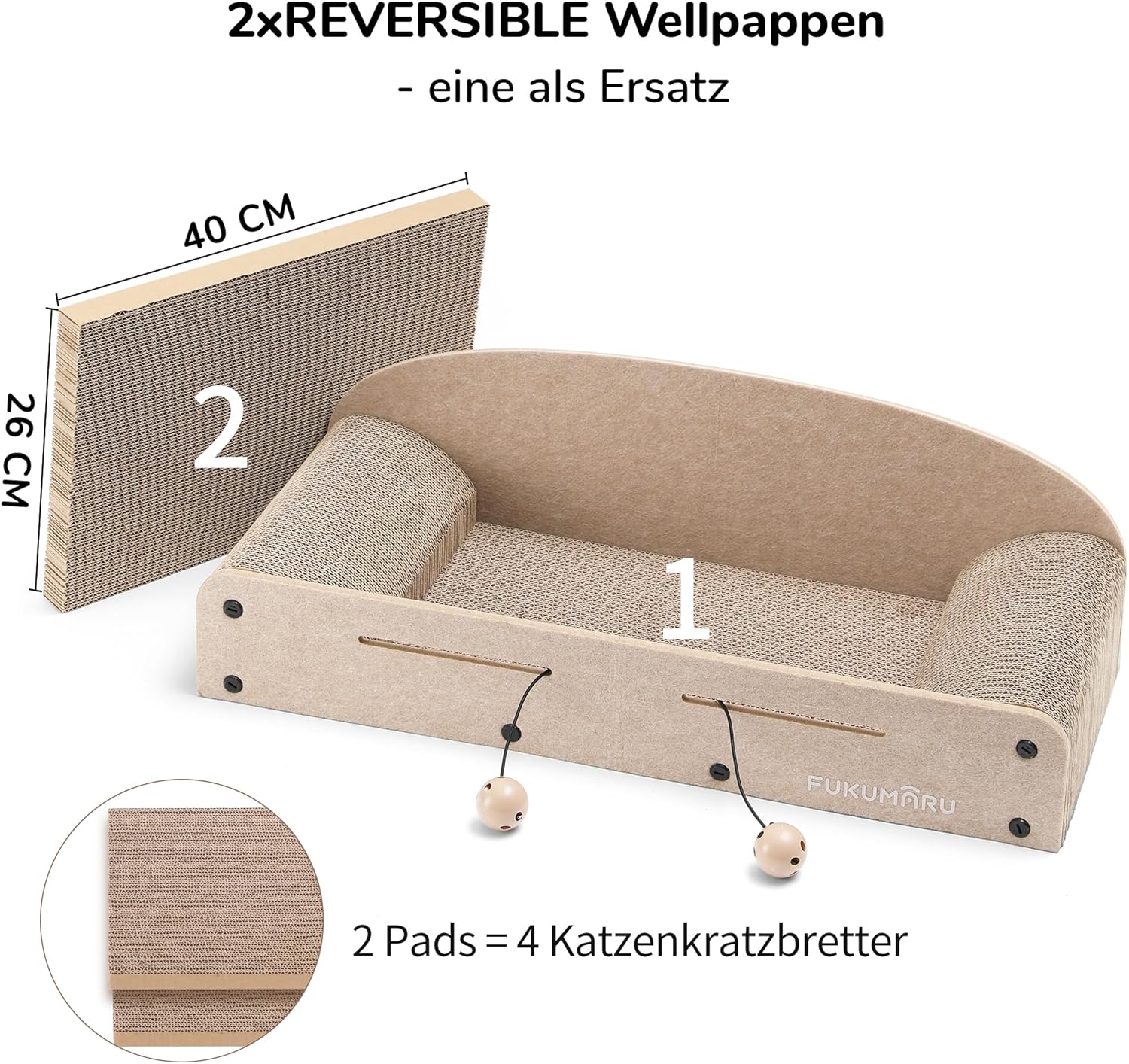 • Безгрижен избор - дъската за драскане FUKUMARU е синоним на устойчиви и издръжливи аксесоари за котки. Кутията, както и включените дъски за драскане, са изработени от рециклиран картон и филц.