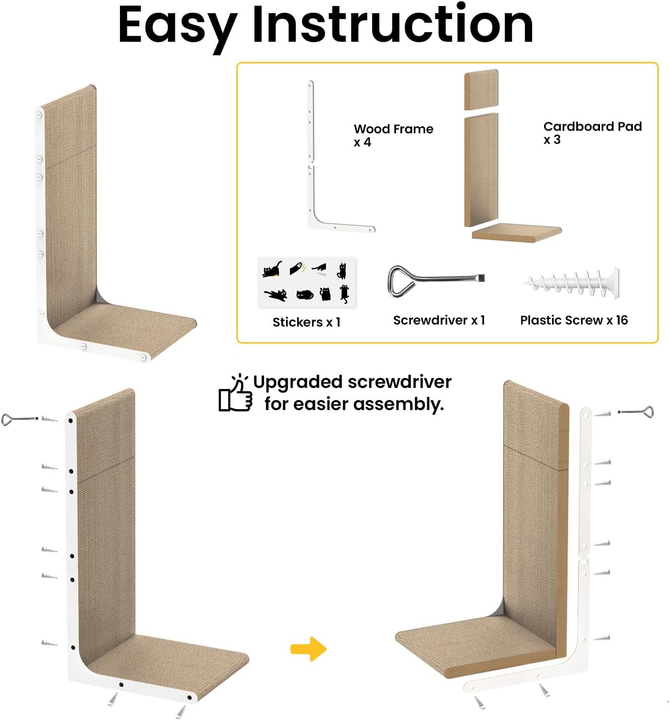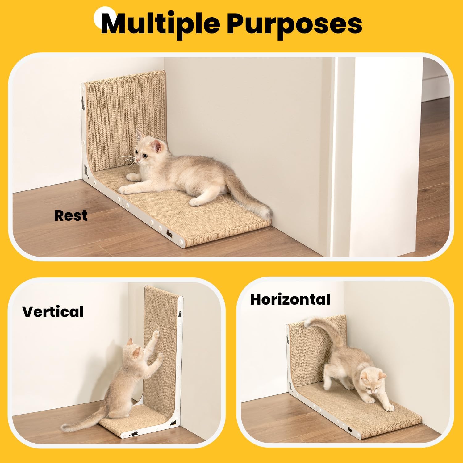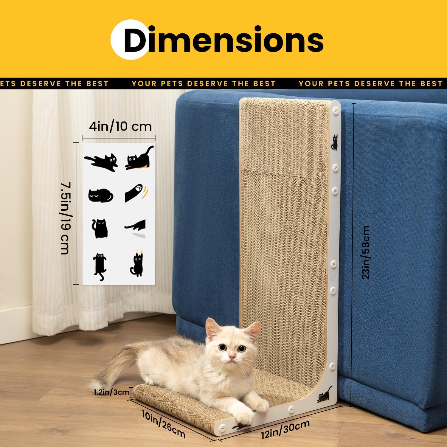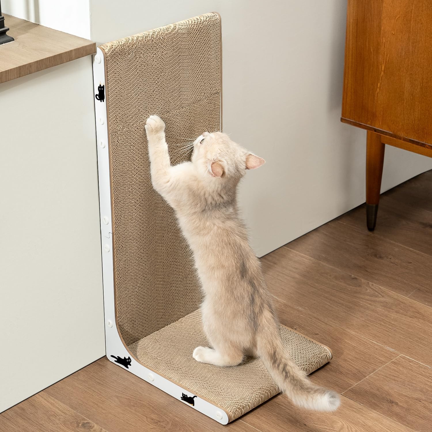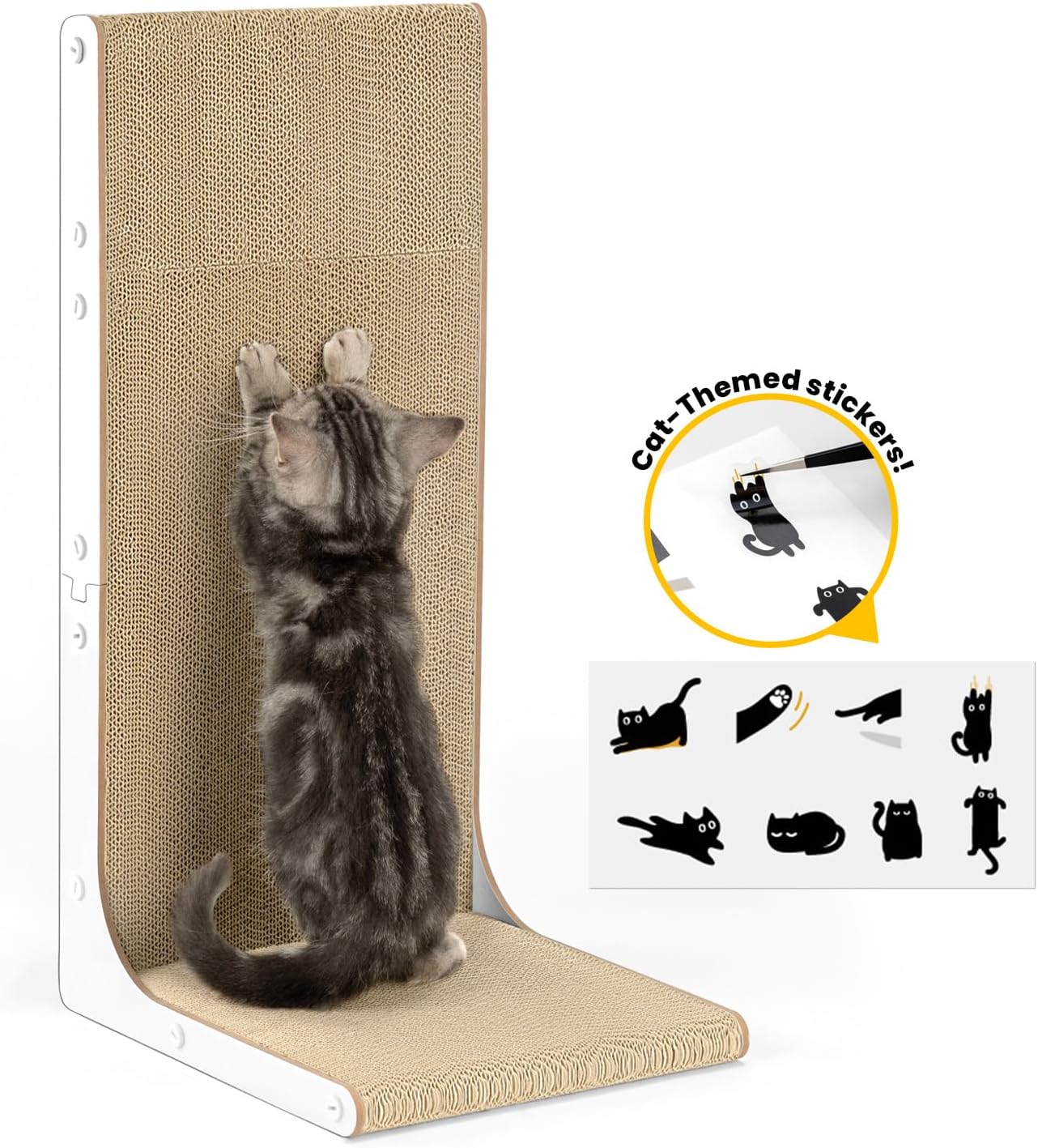 Дъска за драскане за котки, L-образна, висока 58 см, вертикална дъска за драскане за котки, с котешка трева и стикери за котки, мебели за драскане от здрав картон за стена и ъгъл, голяма