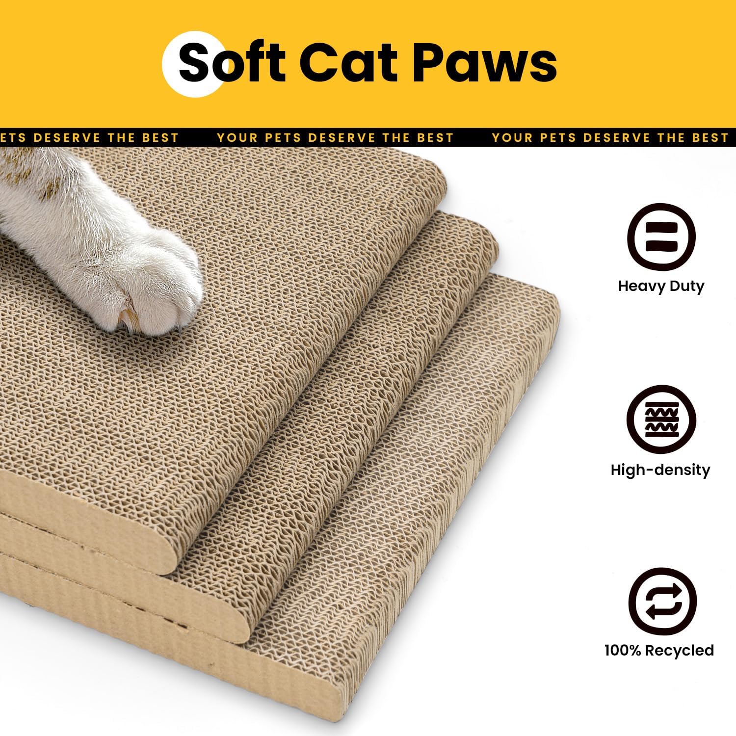 • ИЗДРЪЖЛИВ И ЕСТЕСТВЕН МАТЕРИАЛ Изработени от издръжлив гофриран картон и 100% рециклиран картон, така че подложките за драскане за котки са достатъчно здрави, за да издържат дори на най-острите нокти достатъчно дълго. Освен това са безопасни и нетоксични. Дори лепилото, използвано за изработката, е направено от царевично нишесте - абсолютно здравословно за вашите очарователни котки.