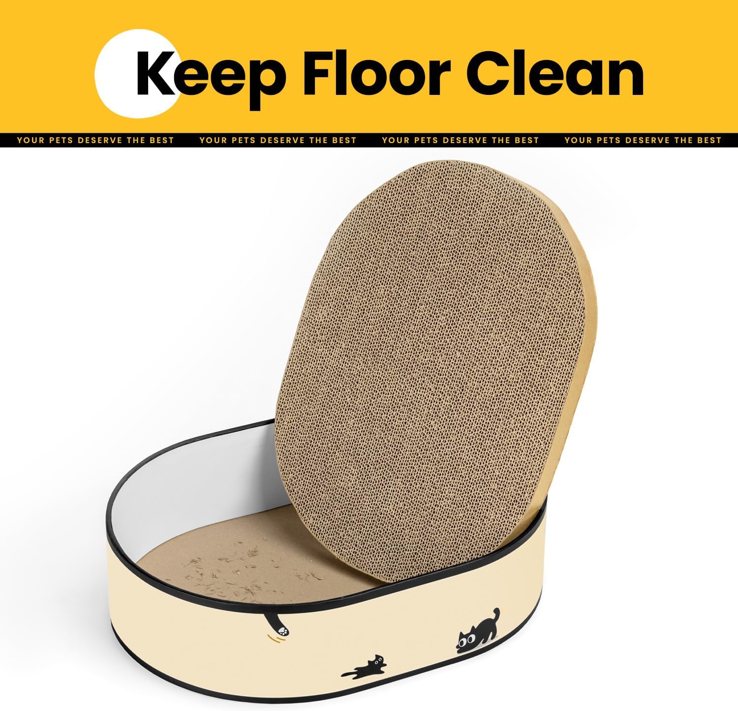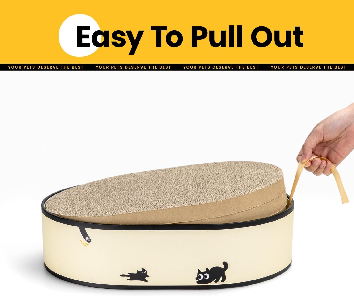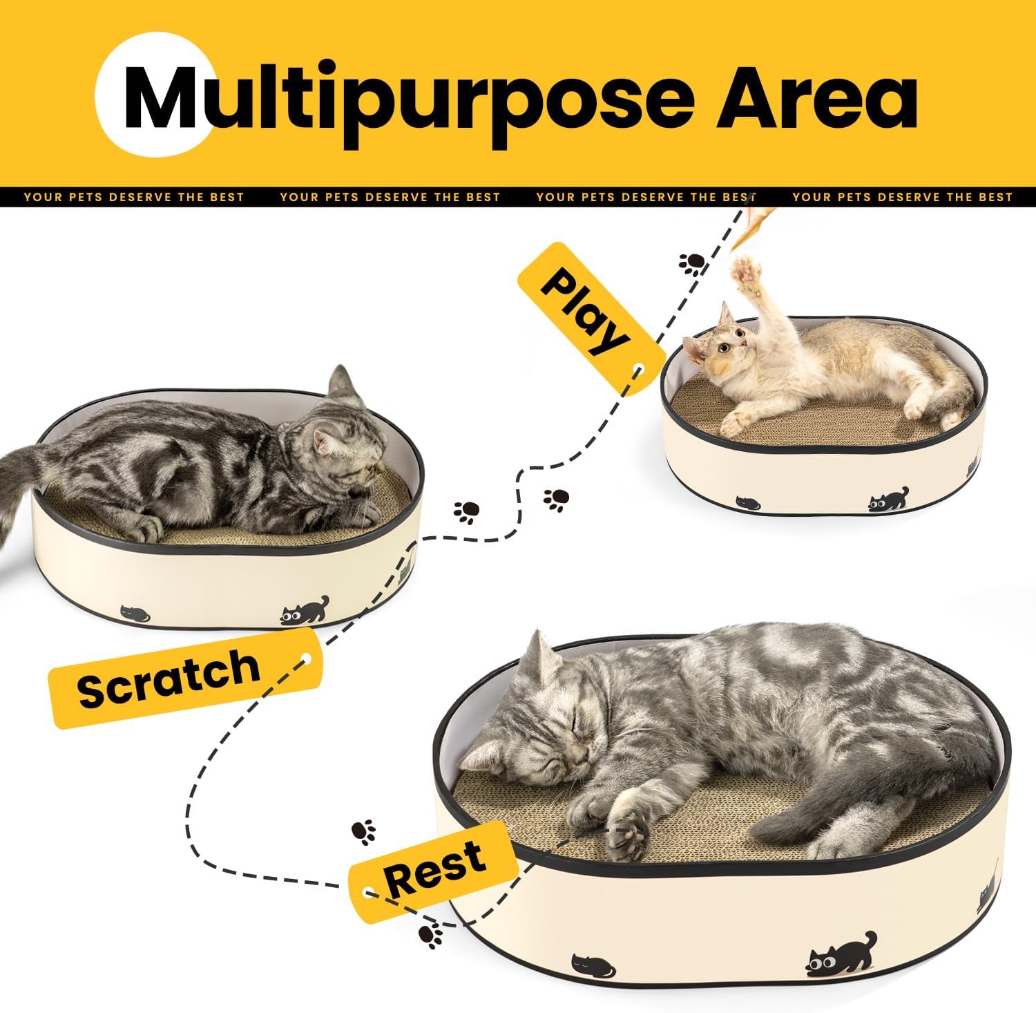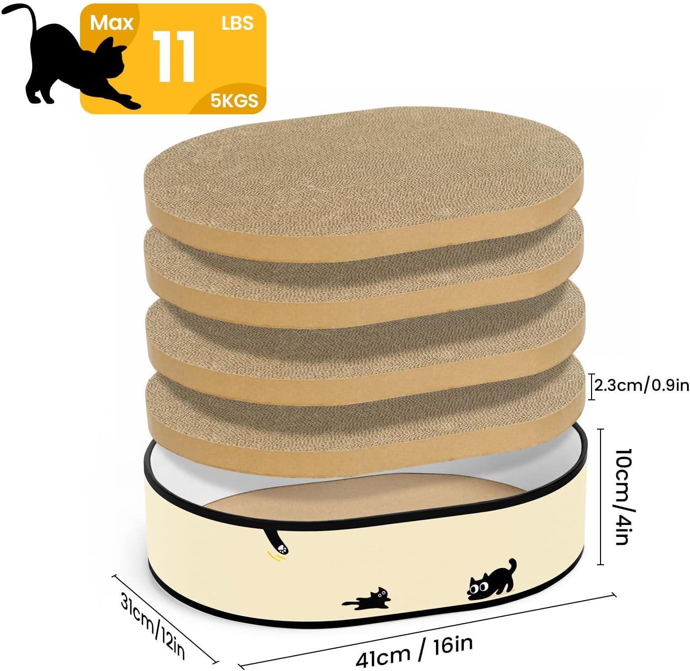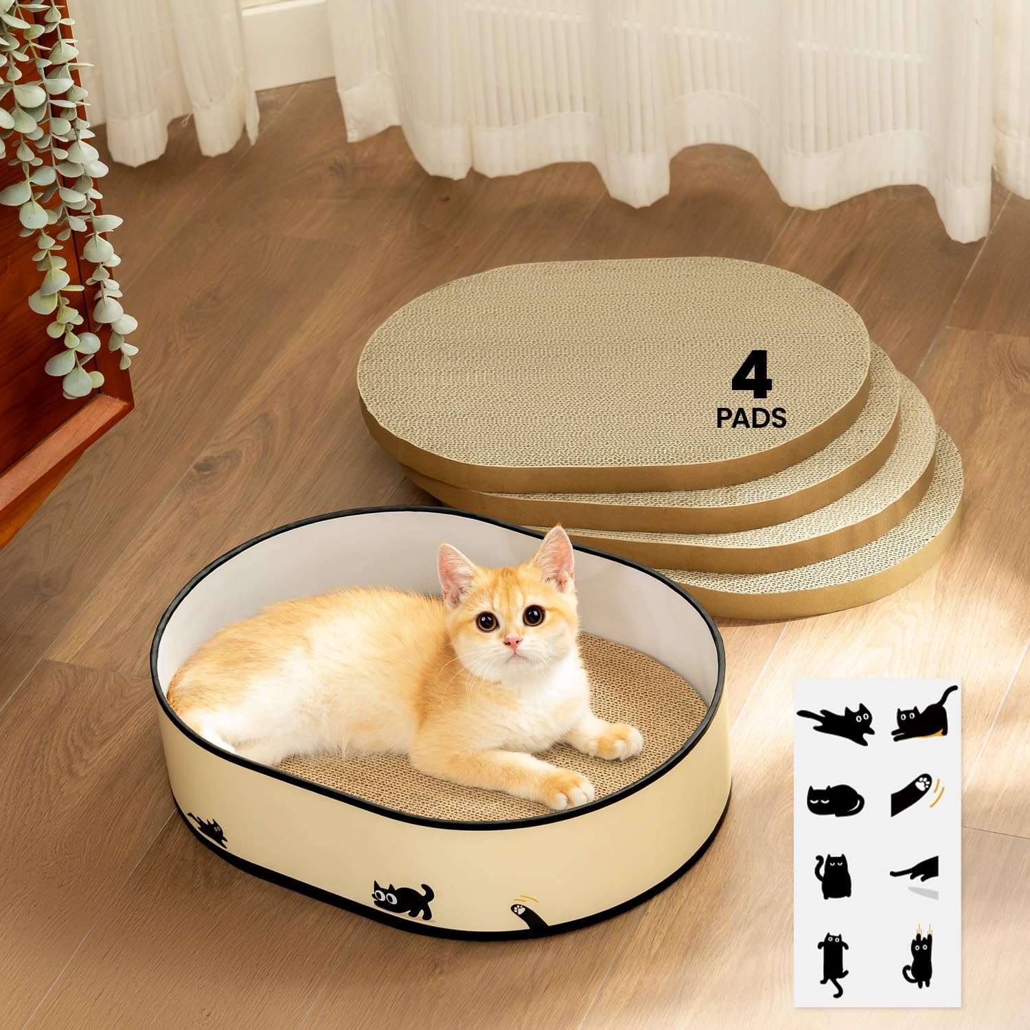 Дъска за драскане за котки с кутия и 4 сменяеми картонени подложки за драскане - Голяма мебел за драскане, изработена от здрав гофриран картон, двустранни дъски за драскане със стикери „Направи си сам“ - Котешки салон, място за спане на домашни котки, защита на мебели