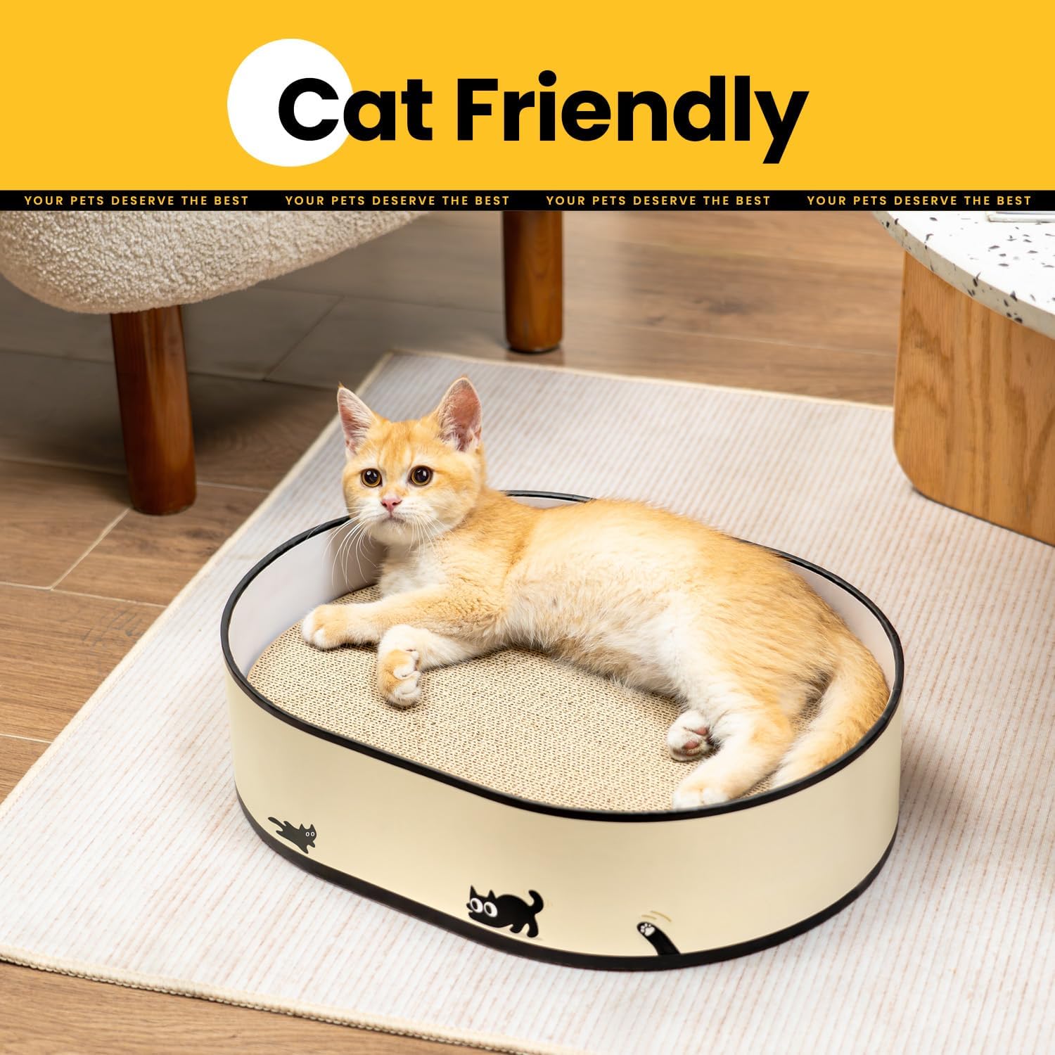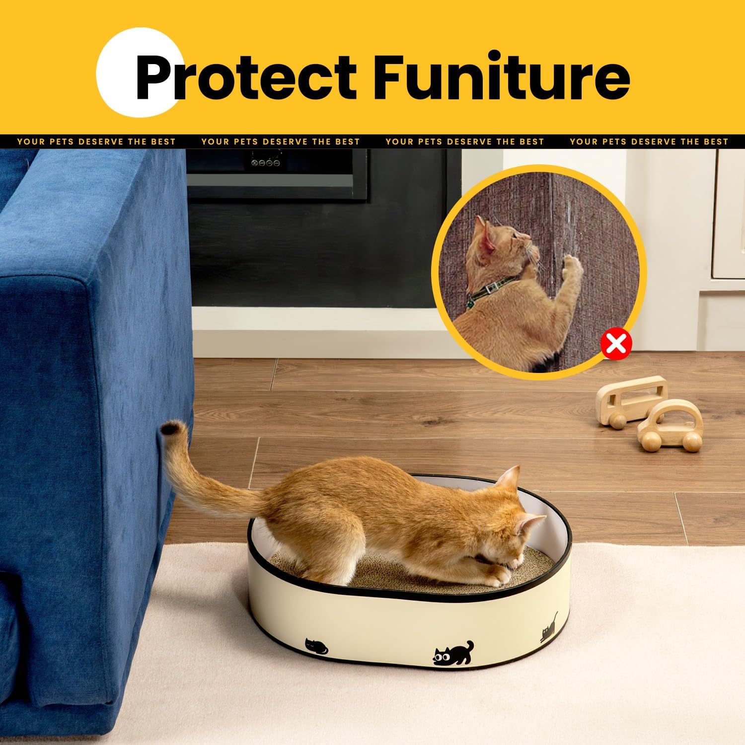 • ИЗДРЪЖЛИВ И ЕСТЕСТВЕН МАТЕРИАЛ Изработени от издръжлив гофриран картон и 100% рециклиран картон, така че подложките за драскане за котки са достатъчно здрави, за да издържат дори на най-острите нокти достатъчно дълго. Освен това са безопасни и нетоксични. Дори лепилото, използвано за изработката, е направено от царевично нишесте - абсолютно здравословно за вашите очарователни котки.