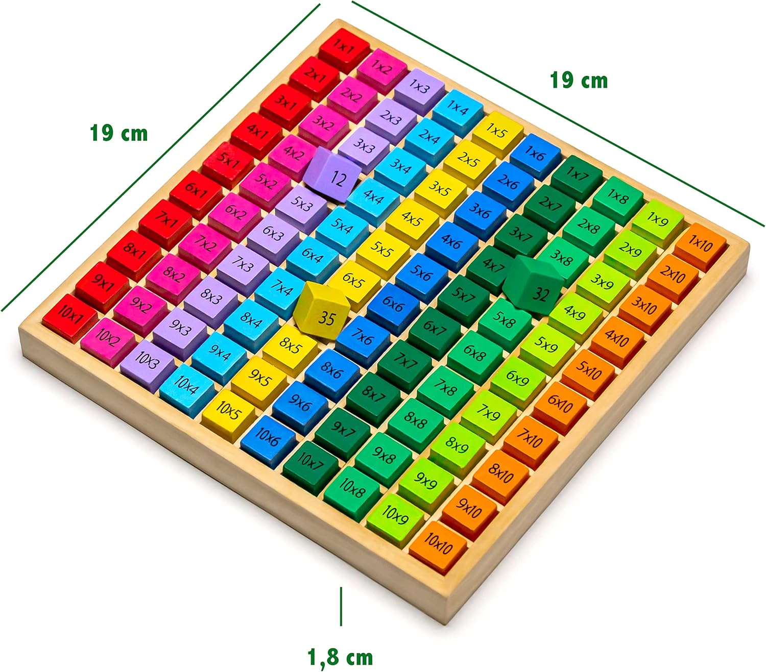 Дъска за умножение Natureich 1x1 за ученици от началното училище, дървена дъска за броене, многоцветна