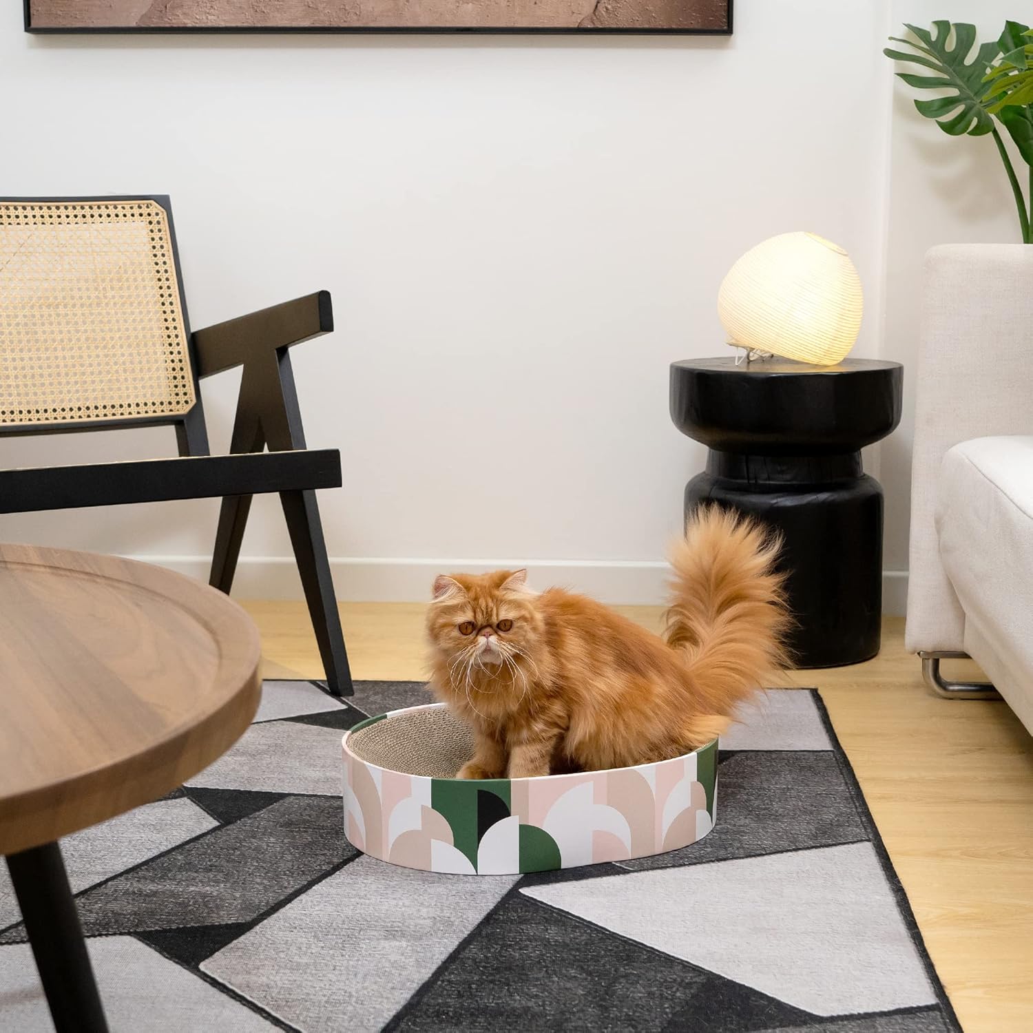• Комбинация от драскане и почивка: овалните дъски за драскане за котки Conlun съчетават забавлението от драскане с релаксацията. Вдлъбнатата повърхност осигурява уютно място за почивка на котката след остриване на ноктите - идеално за активни почивки при игра.