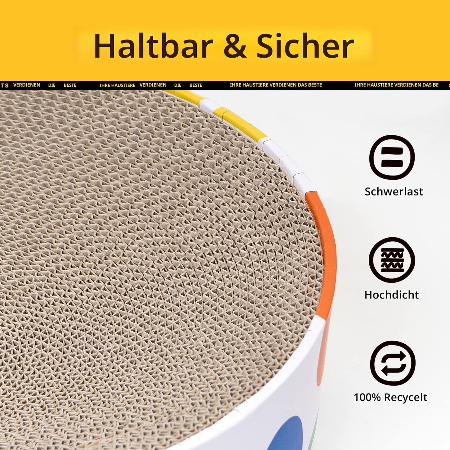 • НАТУРАЛНО И БЕЗОПАСНО: Изработено от издръжлив гофриран картон и нетоксично лепило от царевично нишесте. Предпазва ноктите на вашата котка и околната среда. За безгрижно удоволствие от чесането.