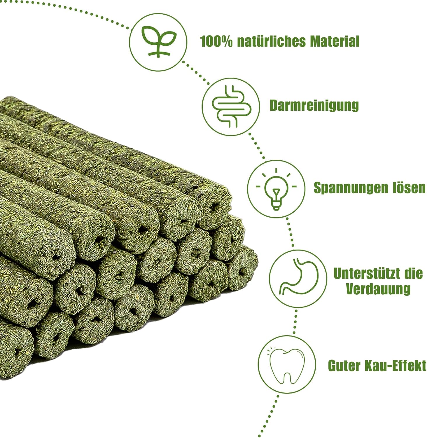 • ГАРАНЦИЯ ЗА КАЧЕСТВО Нашите играчки за дъвчене Lieschgrass са вакуумно запечатани, за да се запази свежестта и средната твърдост за никнене на зъби на малки животни.
