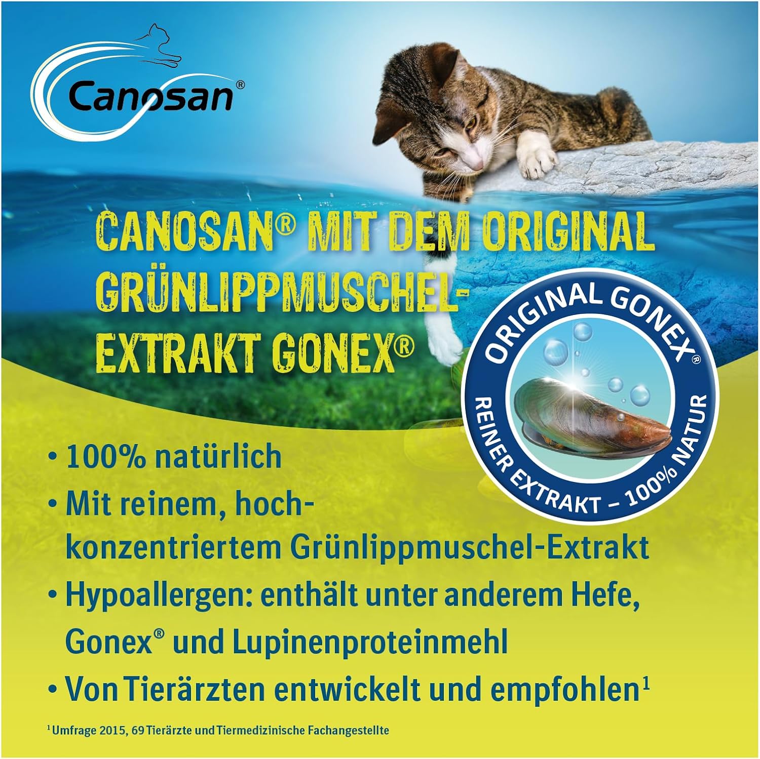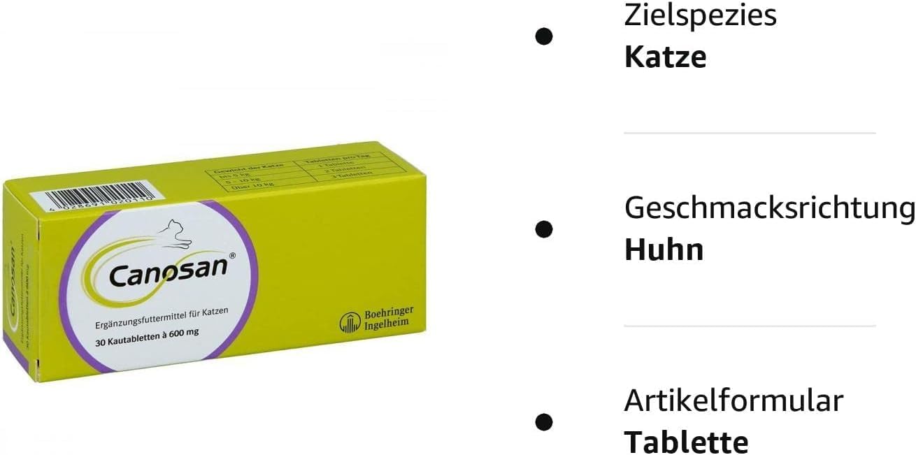 Препоръка за хранене: до 5 кг = 1 таблетка на ден; до 10 кг = 2 таблетки на ден; над 10 кг = 3 таблетки на ден. Подходящият брой таблетки Canosan® за котки може да се дава като ежедневно лакомство или да се смеси с обикновена храна.