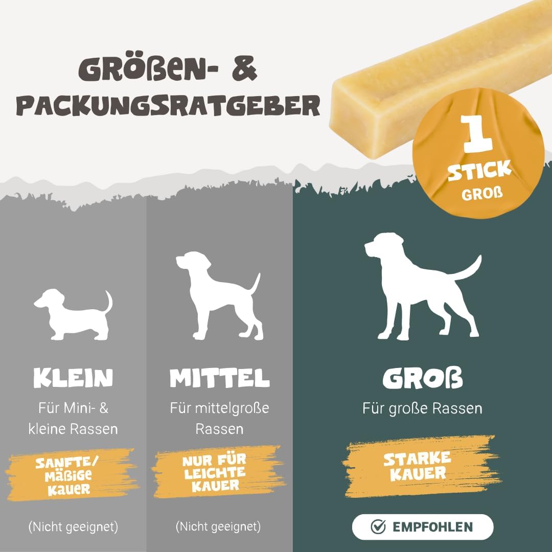 • ИЗТОЧНИК НА ПРОТЕИНИ И КАЛЦИЙ: Дъвчащите таблетки с як помагат за почистването и укрепването на зъбите и костите на кученца, възрастни кучета и кучета в напреднала възраст. Нашите дълготрайни, богати на протеини и калций зъбни стикове със сирене и мляко са подходящи за малки, средни, големи и дори екстра големи кучета.