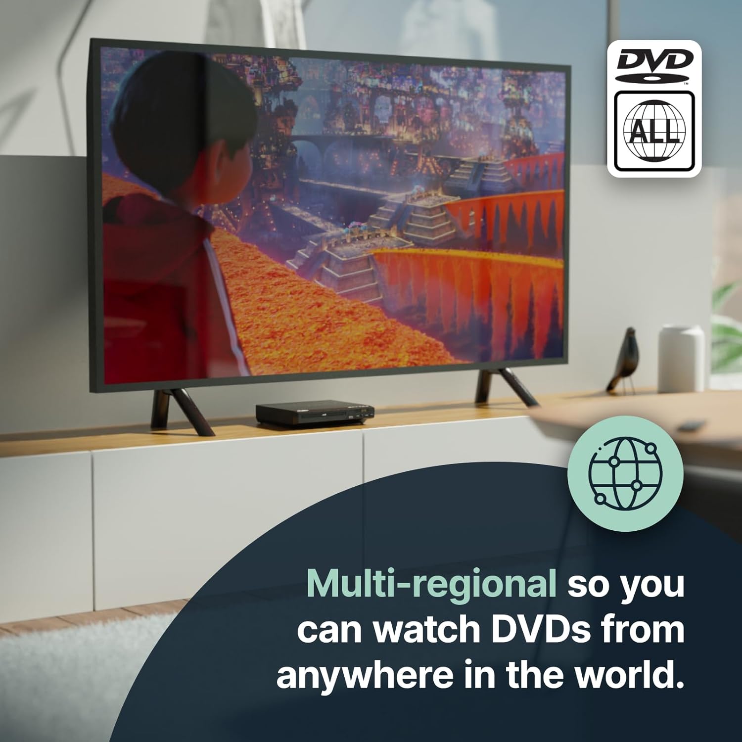 • DVD плейър с HDMI и мащабиране до 1080p - Наслаждавайте се на ясни филми с HDMI изход и мащабиране до 1080p. Идеален като DVD плейър за телевизор, компактен DVD плейър или мини DVD плейър за телевизор.