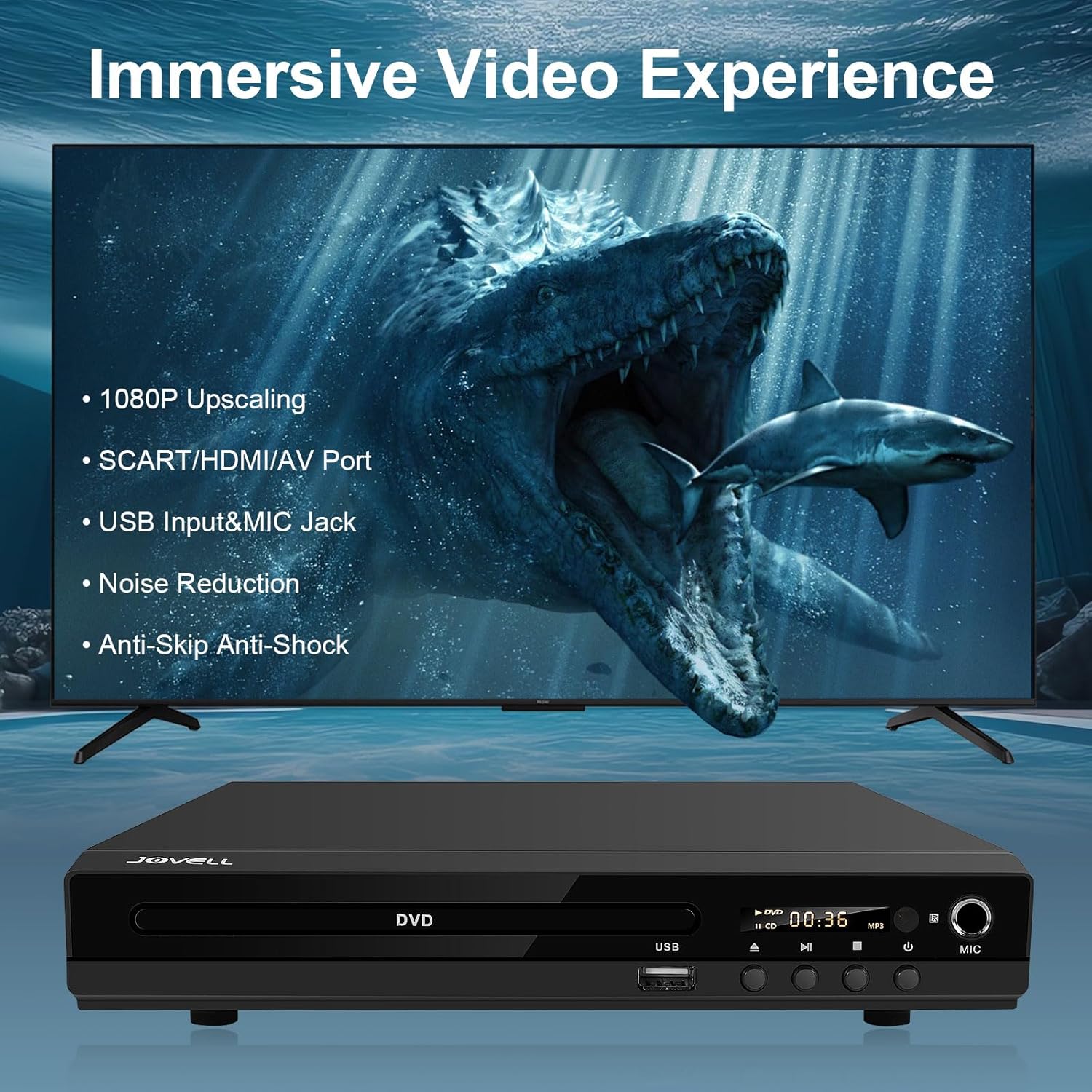 • 【DVD плейър за всички региони】Нашият DVD плейър за множество региони възпроизвежда DVD-та от всички региони (1-6, с изключение на японските CPRM дискове) и поддържа множество дискови формати: CD, DVD, DVD-R/DVD+R, DVD-RW/DVD+RW, CD-R/CD-RW, VCD, SVCD и дискове, записани с DVD рекордери. Насладете се на неограничен избор от дискове и максимално изживяване при гледане и слушане. [Blu-ray дискове/4K дискове не се поддържат.]