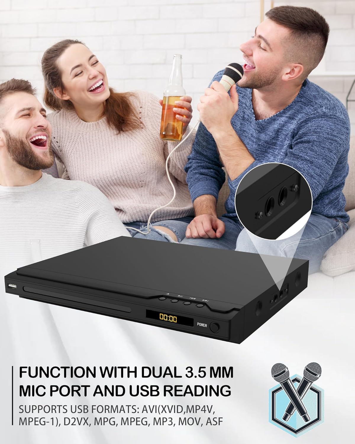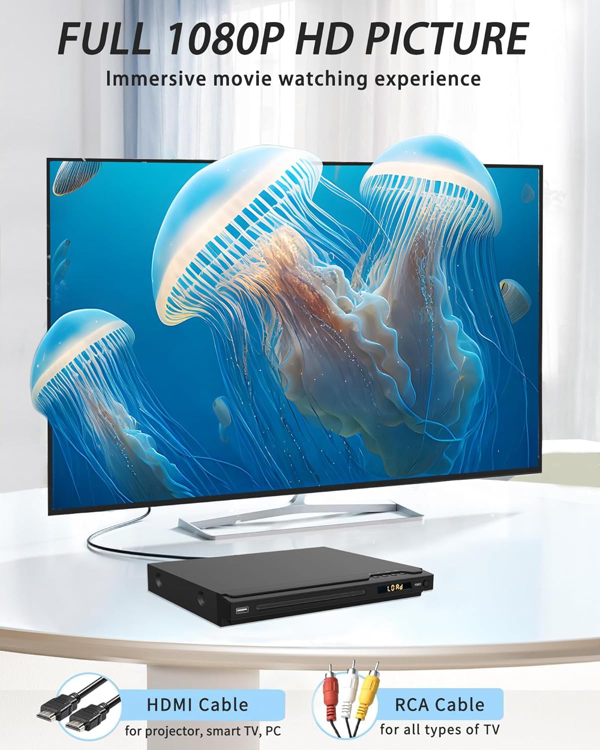 DVD плейър за телевизор, HDMI DVD плейъри, поддържащи PAL/NTSC, CD плейър без регионални ограничения с караоке портове, USB вход, HDMI и AV кабели