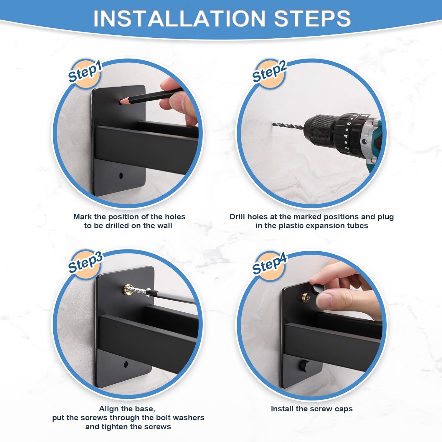 Лесна за монтаж, перфорираната скоба осигурява висока товароносимост, не е нужно да се притеснявате за проблеми с падането. Изработена от висококачествена неръждаема стомана, държачът за кърпи е с много добро качество, устойчив на ръжда, надраскване и корозия. Това ще направи банята ви по-чиста и ще изглежда по-добре.
