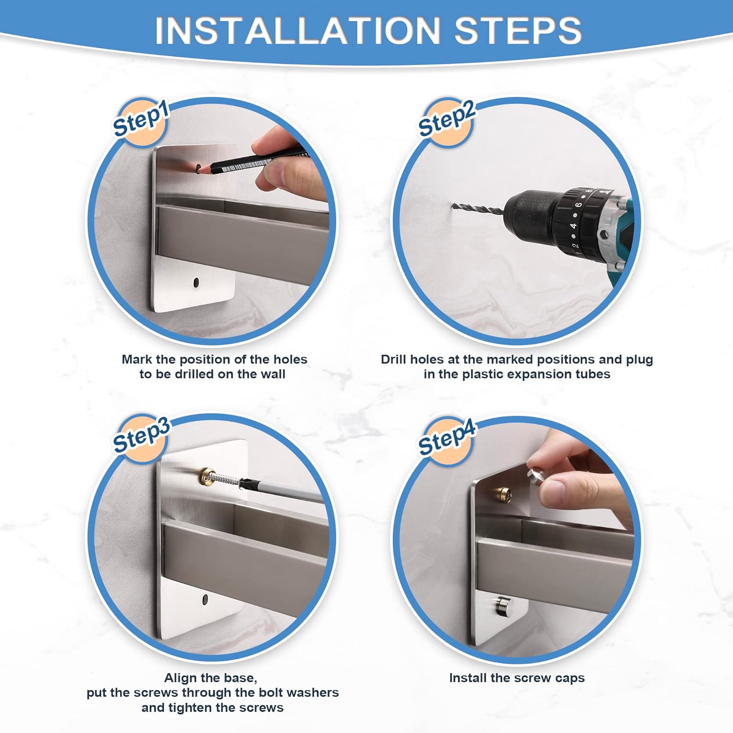 Лесна за монтаж, перфорираната скоба осигурява висока товароносимост, не е нужно да се притеснявате за проблеми с падането. Изработена от висококачествена неръждаема стомана, държачът за кърпи е с много добро качество, устойчив на ръжда, надраскване и корозия. Това ще направи банята ви по-чиста и ще изглежда по-добре.