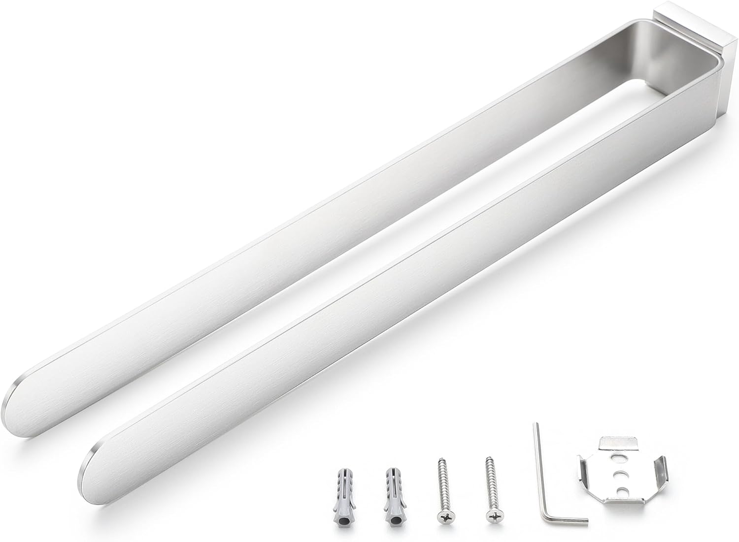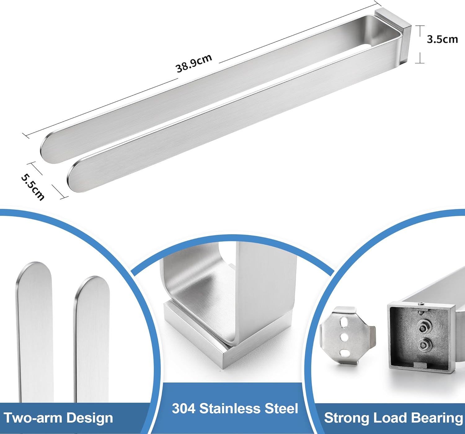 Закачалката за кърпи е многофункционална и може да се монтира под плота, до мивката, в кухнята или в банята и е идеална за бърз достъп до кърпи. Тя е практична в ежедневието, лесна за почистване, а елегантният дизайн с двойно рамо предлага повече място и кърпите съхнат бързо.