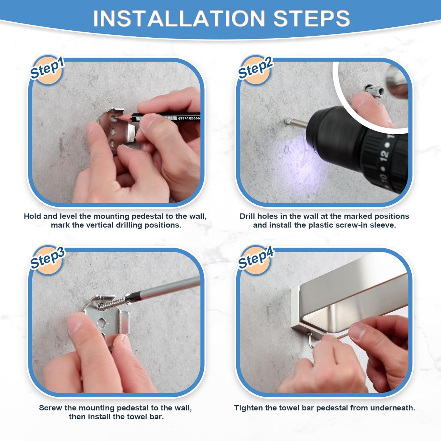 Лесна за монтаж, перфорираната скоба осигурява висока товароносимост, не е нужно да се притеснявате за проблеми с падането. Изработена от висококачествена неръждаема стомана, държачът за кърпи е с много добро качество, устойчив на ръжда, надраскване и корозия. Това ще направи банята ви по-чиста и ще изглежда по-добре.