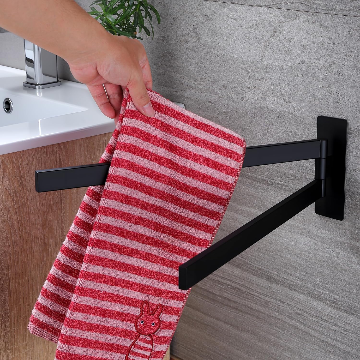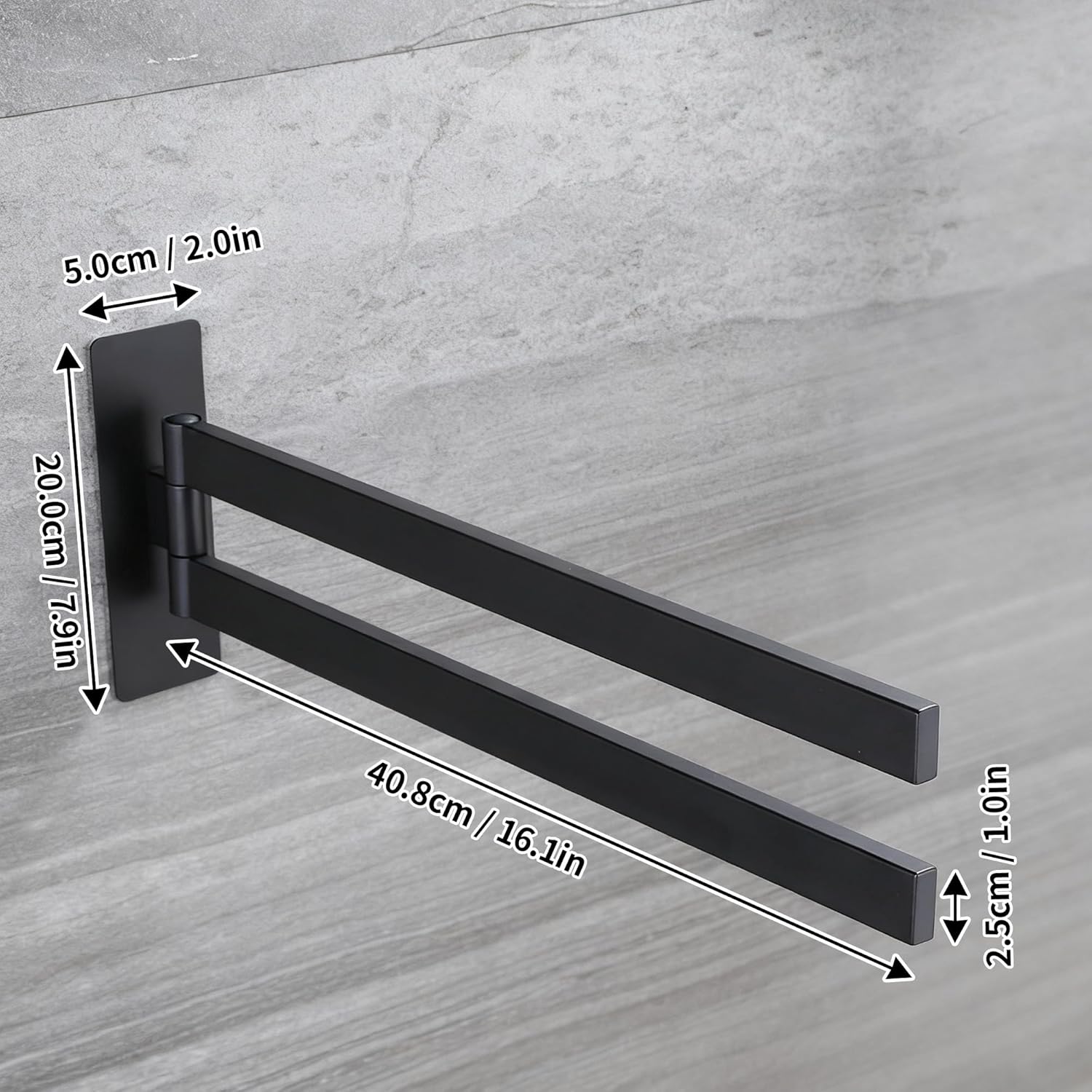 • НОВО ОБНОВЛЕНИЕ С ФУНКЦИЯ ЗА ЗАВЪРТАНЕ НА 180° Поставката за кърпи без пробиване се завърта на 180°. Дизайнът с двоен прът позволява едновременно съхранение на две кърпи, което спестява място, гъвкава и практична. Идеална за спални, бани, кухни и сервизни помещения. Моля, проверете желаните размери преди покупка.