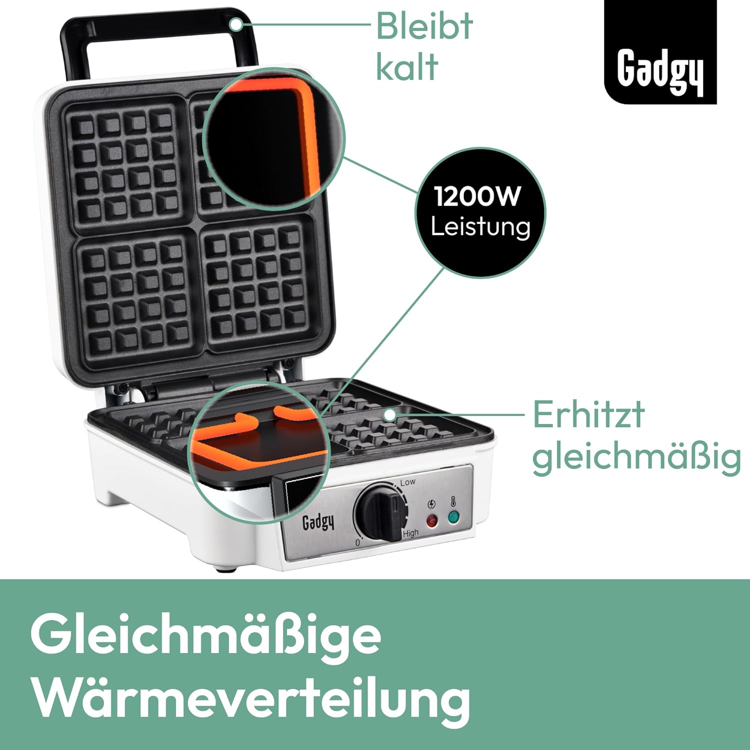 Двоен гофретник Gadgy за 2 гофрети, 1200 W, бързо загряване и равномерно печене, компактен дизайн, гофретник в бяло, перфектен гофретник за вашата кухня