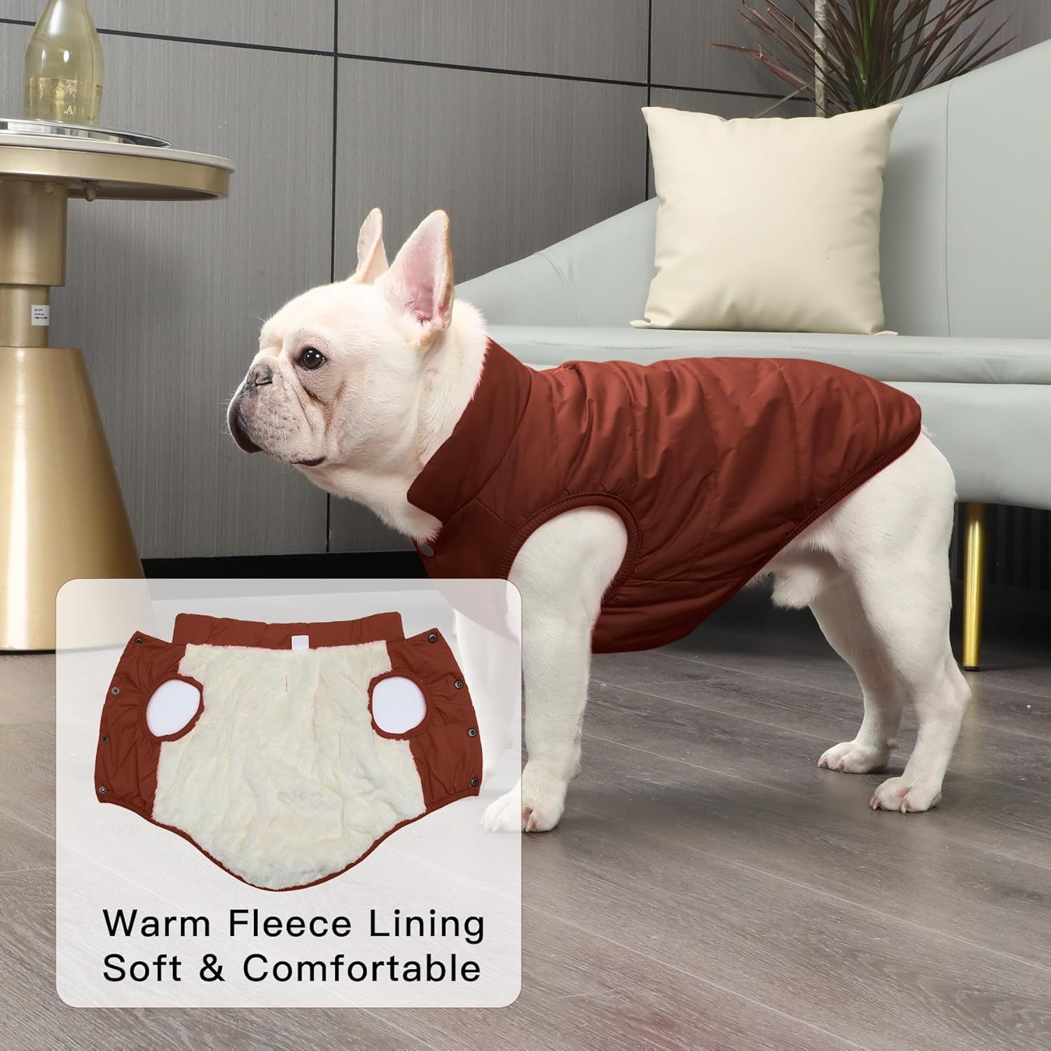 Материал: топло зимно яке за кучета с поларена подплата; Изключително мека полиестерна материя, ветроустойчива и удобна;