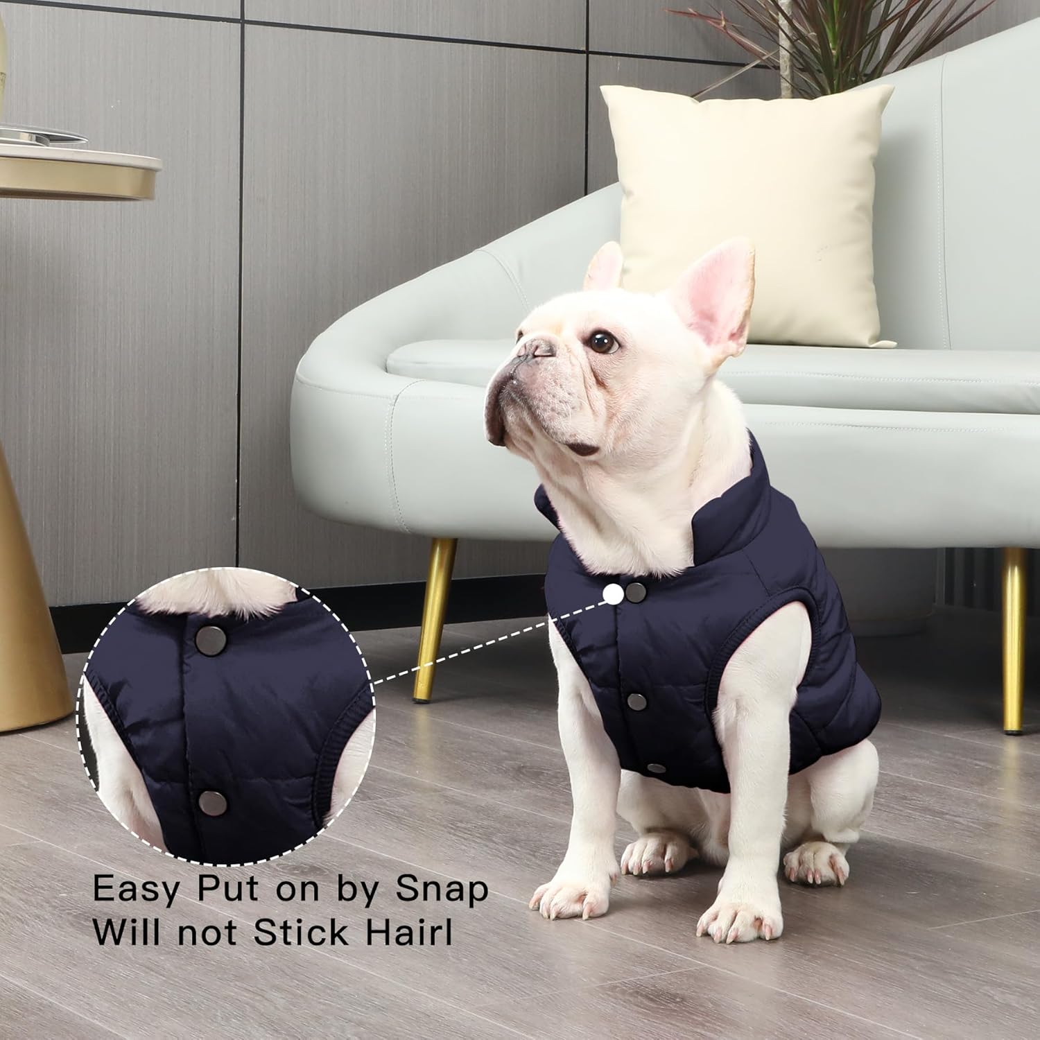 Модно, семпло яке за кучета, лесно за обличане и събличане с метални ножици.