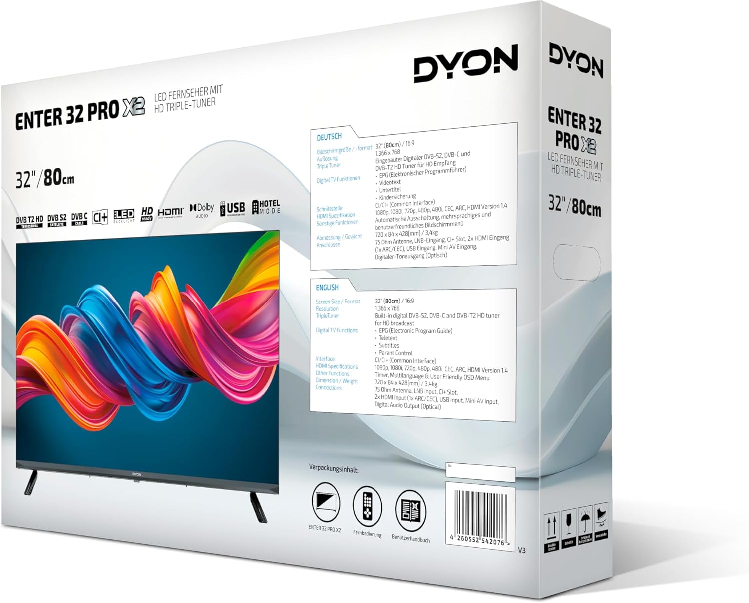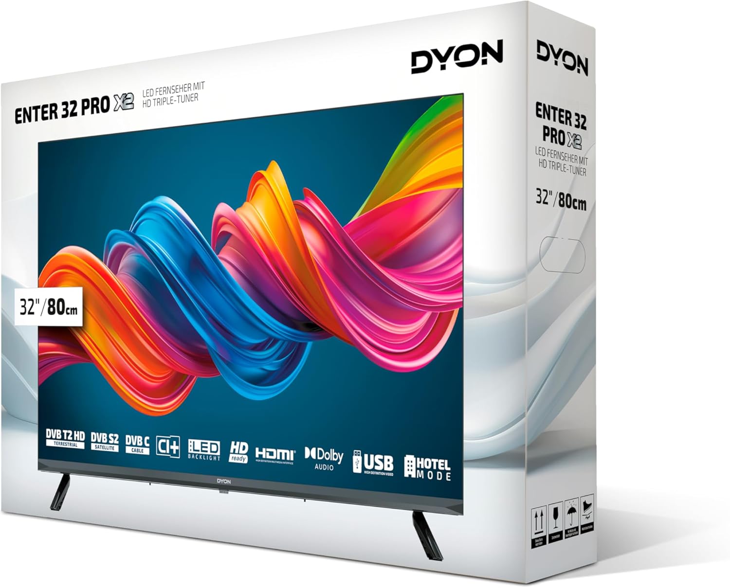 DYON Enter 32 Pro X2 (2024) 80 см (32-инчов) телевизор (троен тунер (DVB-C/-S2/-T2), хотелски режим, USB медиен плейър.) Черен