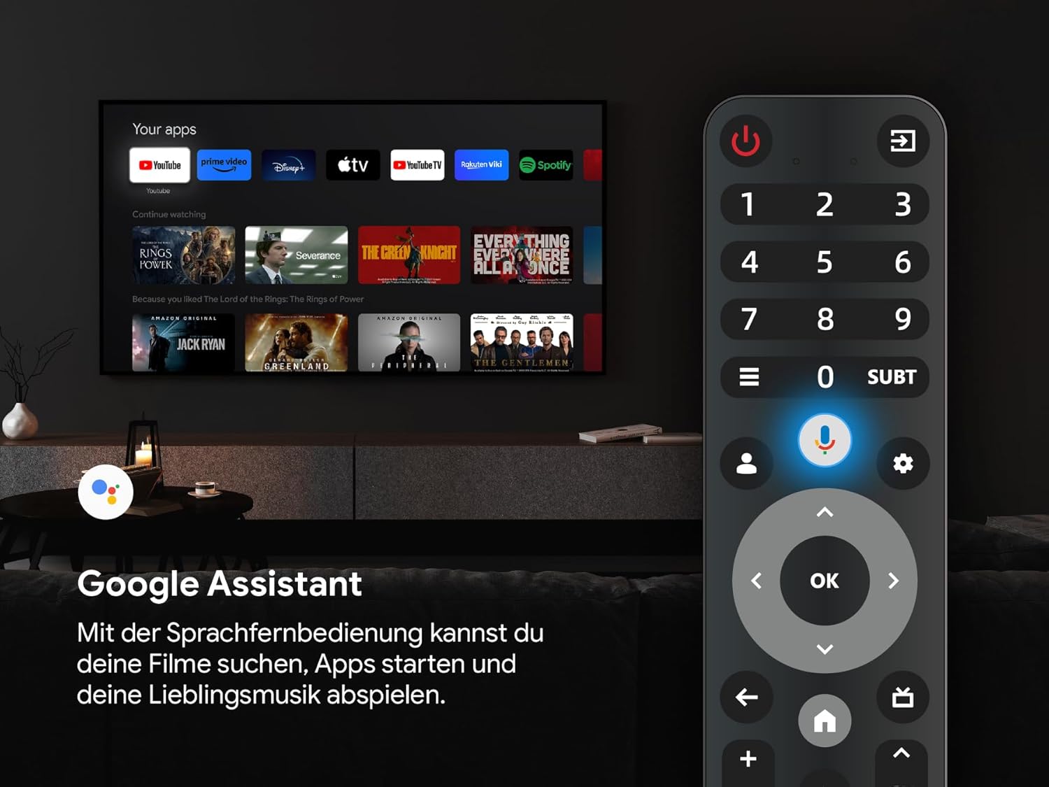 • Smart TV с Google TV – Директен достъп до Netflix, Prime Video, YouTube, +, DAZN и много други – лесно инсталирайте допълнителни приложения чрез Google Play Store.