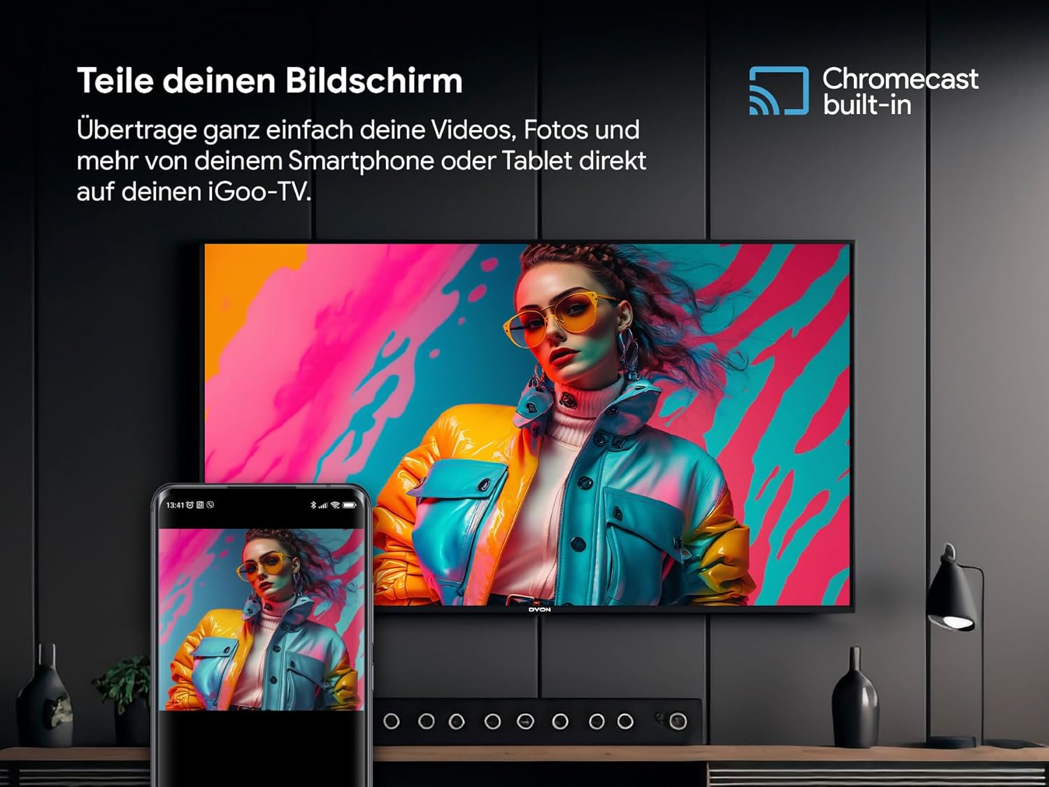 DYON iGoo-TV 50U-2 - 50-инчов (126 см) 4K Ultra-HD Smart TV с Google TV, HDR10, троен тунер (DVB-S2/C/T2), WiFi, Bluetooth, Google Assistant, Netflix, Prime Video, [Модел 2025]