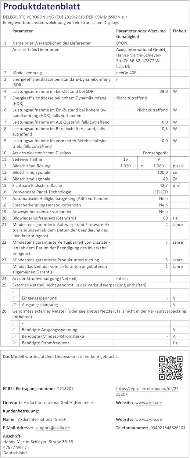 DYON nexGo 40F Smart TV – 40-инчов (100 см) Full HD Google TV с гласово управление, Google Assistant, Play Store, Chromecast, троен тунер, Netflix, Prime Video и YouTube [Модел 2025]