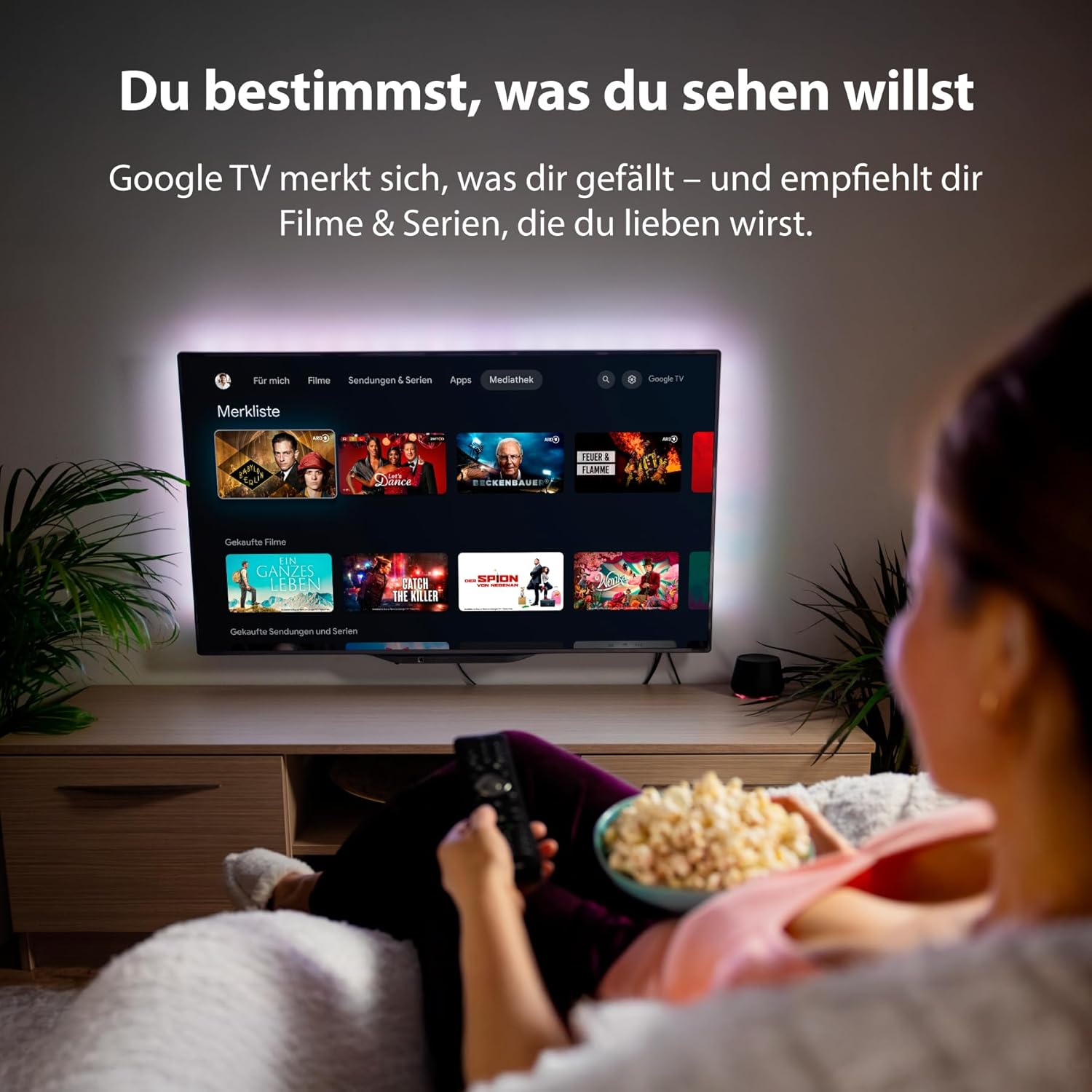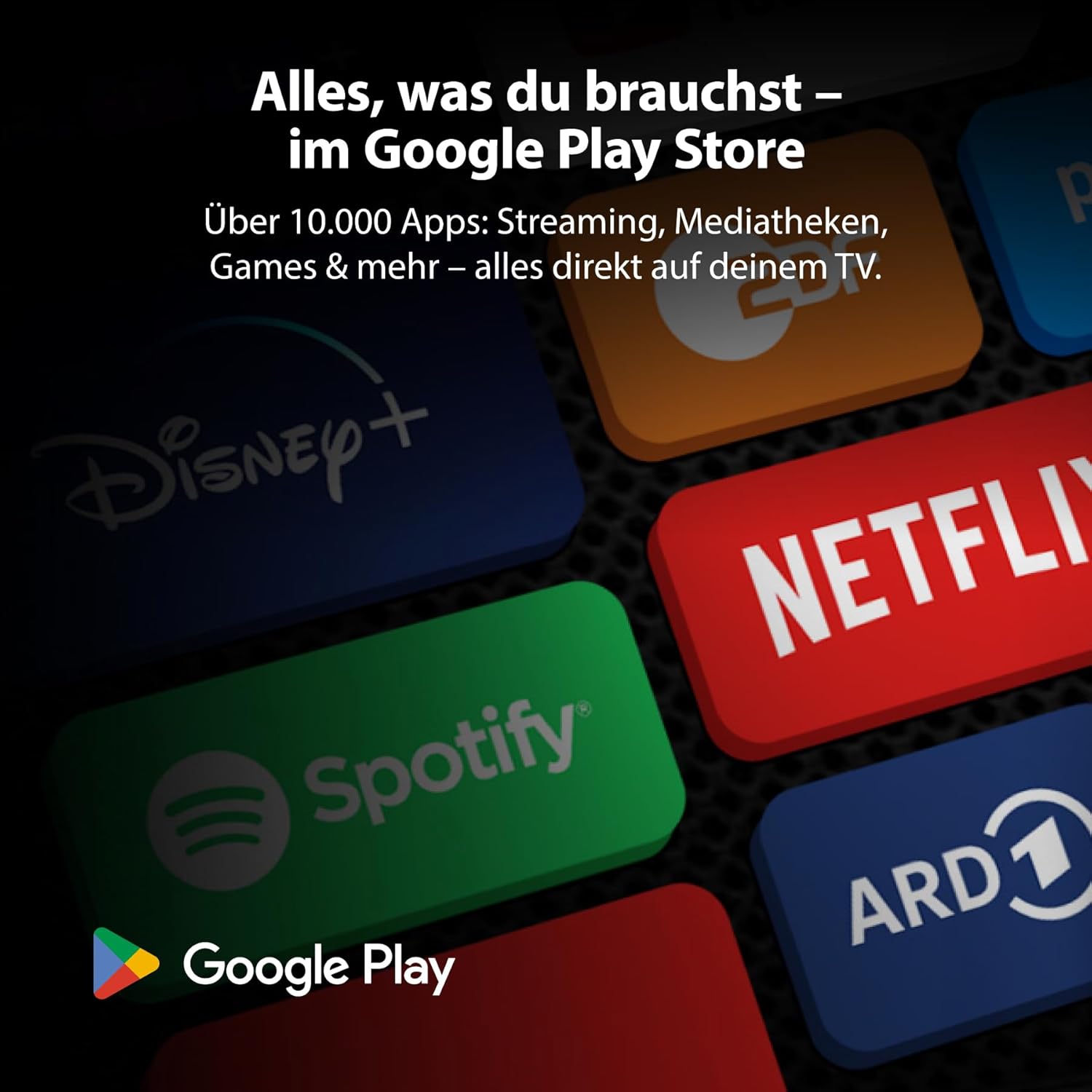 • Smart TV с Google TV – Директен достъп до Netflix, Prime Video, YouTube, +, DAZN и много други – лесно инсталирайте допълнителни приложения чрез Google Play Store.