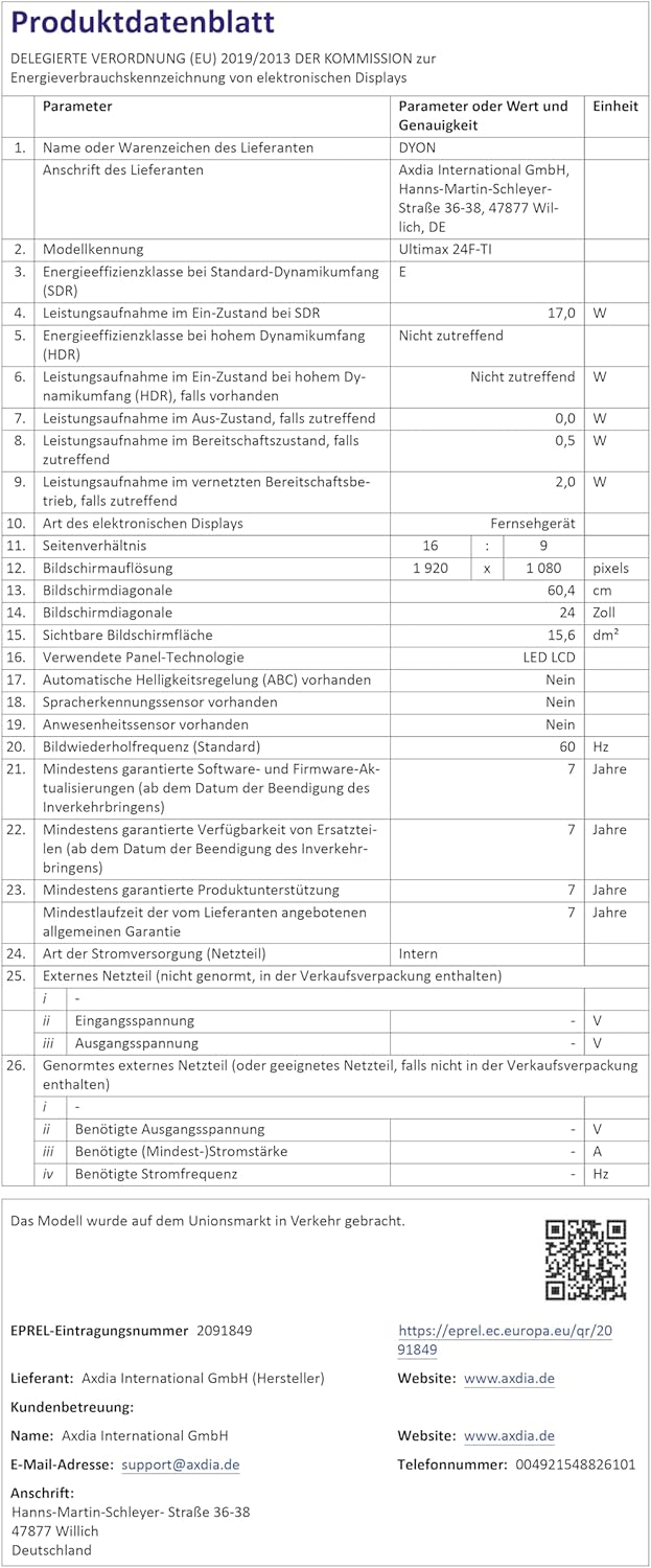 DYON ULTIMAX 24F-TI - 24-инчов (60 см) Full HD Smart телевизор с операционна система Samsung Tizen, троен тунер (DVB-C/-S2/-T2), Samsung Smart & Gaming Hub, Prime Video, Netflix, Disney+ [2025]
