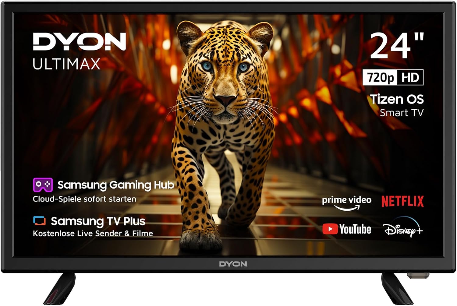 DYON ULTIMAX 32H-TI-W - 32-инчов (80 см) HD Smart TV с Tizen OS, троен тунер (DVB-C/-S2/-T2), Samsung Smart Hub, Prime Video, Netflix, Disney+ [2025]