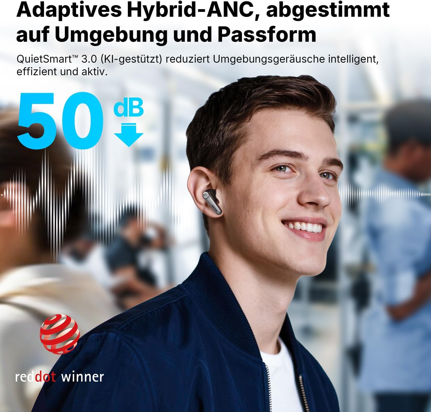 • Най-компактните TWS слушалки в света с хибридно ANC. Изживейте кристално чист звук с висока резолюция и мощно шумопотискане - наградени с CHIP Highlight и Red Dot Design Award (базирани на официални данни, към октомври 2025 г.).